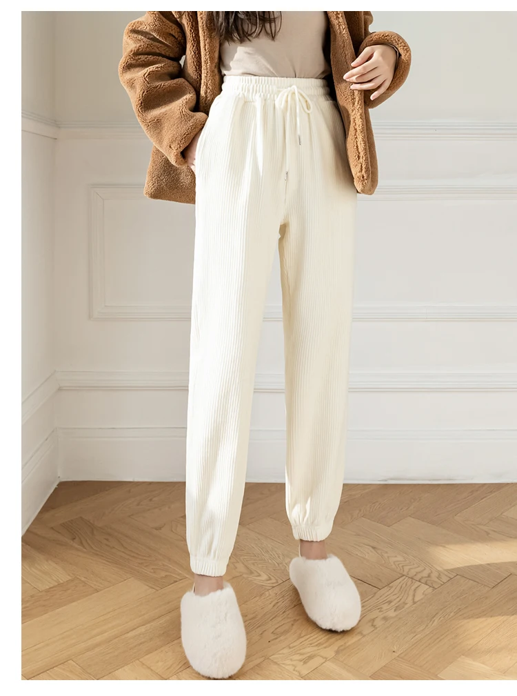 Женские вельветовые брюки до щиколотки, с высокой талией и карманами