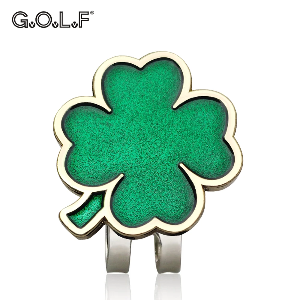 1 шт. маркер для мяча для гольфа с магнитными зажимами для шляпыкепки для гольфа новый зеленый Клевер на удачу с золотым краем назад 1 отметка + 1 зажим подарок для детей