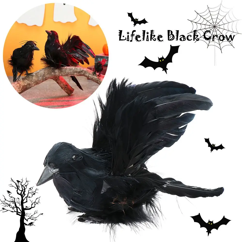 Искусственные Ворон с перьями, реалистичное черное украшение на Хэллоуин, украшение дома с привидениями