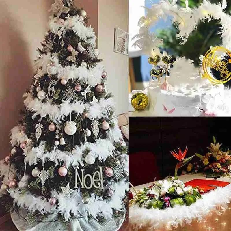 Лента боа из натурального пера 2 м, Рождественская гирлянда для вечеринки, украшение на рождественскую елку, белая, для творчества, свадебные принадлежности, аксессуары для девушек