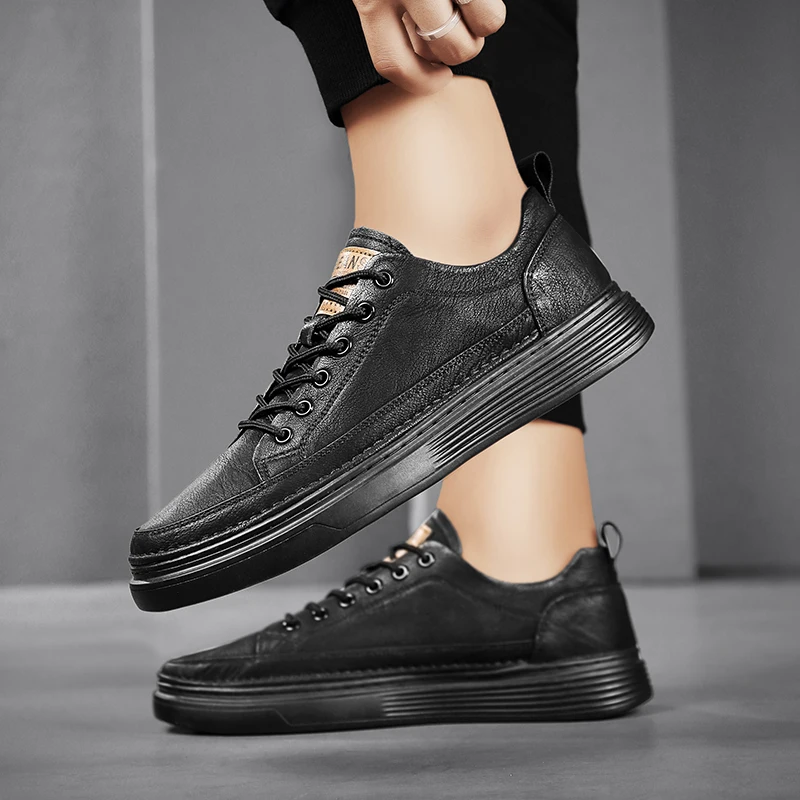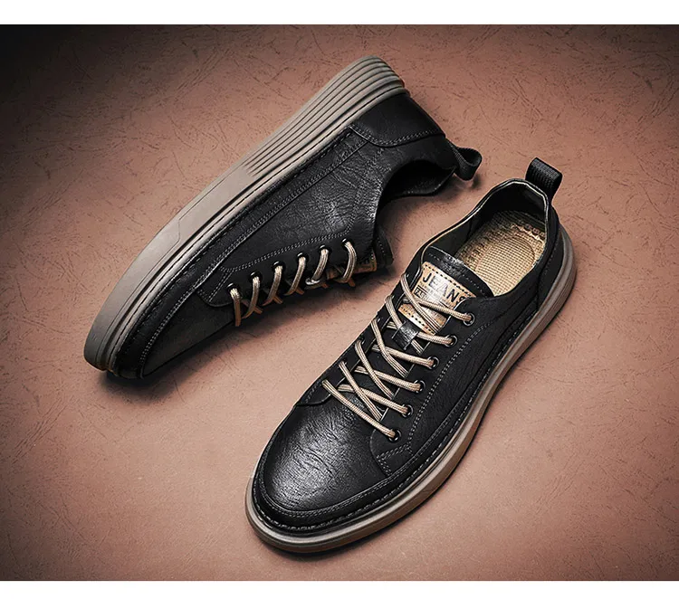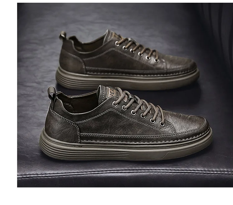 Мужская кожаная повседневная обувь на плоской подошве; Кроссовки для бега на шнуровке; Классические однотонные кроссовки; Новинка 2022 года; Модная нескользящая обувь; Мужские ботинки