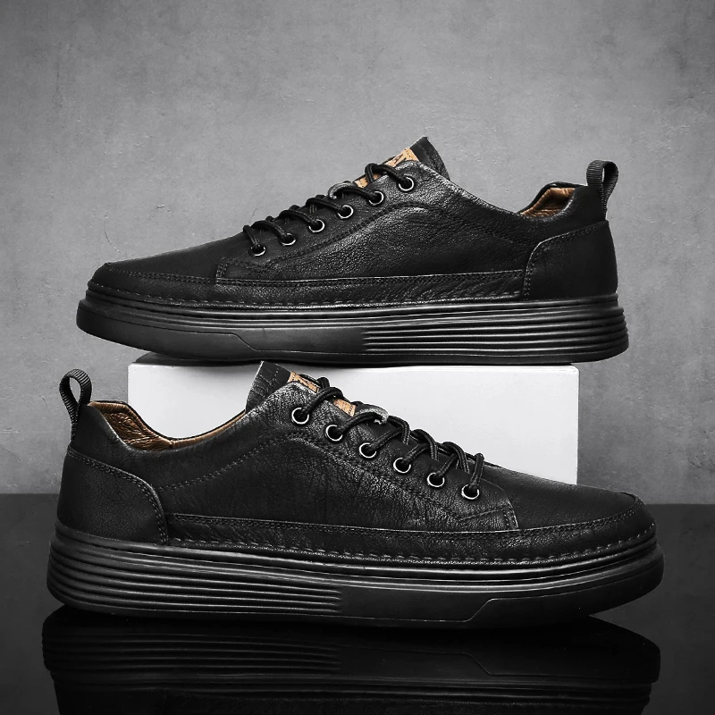 Мужские кожаные кроссовки, черные удобные кроссовки с вулканизирова...