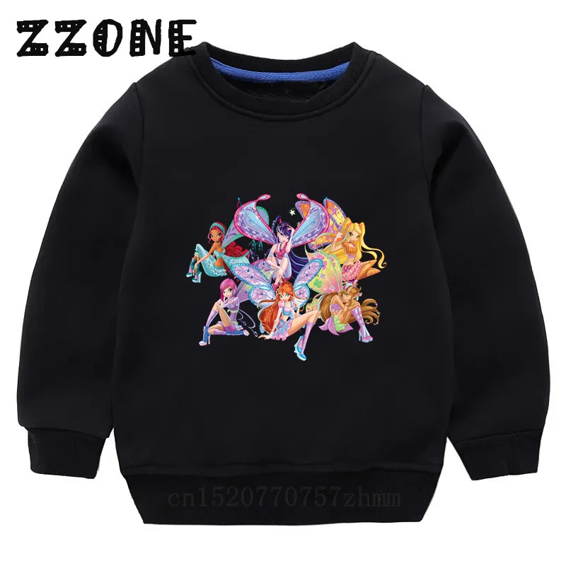 Новинка, весенне-осенние свитшоты для маленьких девочек, смешные детские толстовки с изображением Феи Винкс-бабочки, детский пуловер, топы, одежда для мальчиков