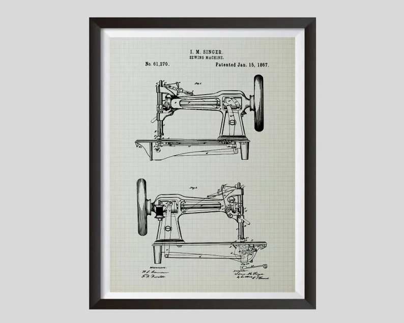 Швейная машина винтажная запатентованная печать 1867, Патентное искусство, швейная комната Декор, портной подарок, портной настенное искусство, постер для комнаты ремесла