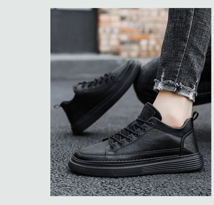 Мужские высокие кожаные кроссовки на толстой подошве, повседневные ...
