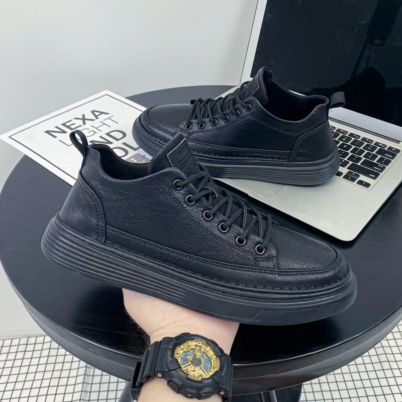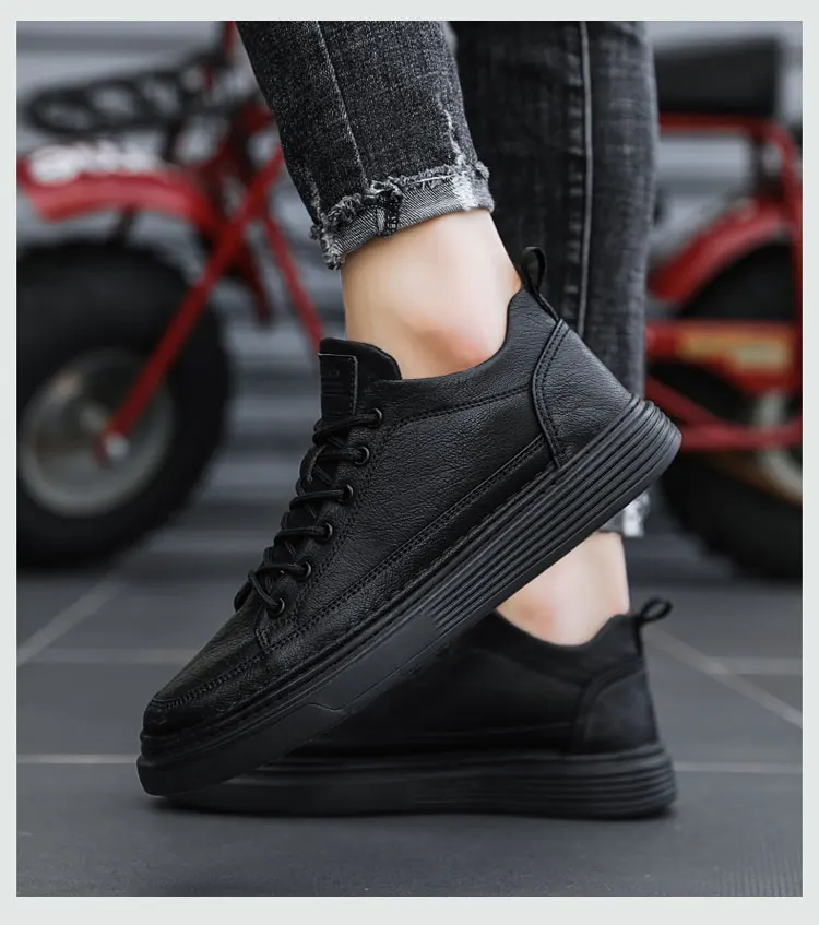Мужские кожаные кроссовки на мягкой подошве, черные повседневные ле...