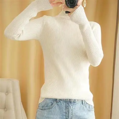 Желтый свитер с высоким воротником для девочек, осенне-зимние топы, облегающий Женский пуловер, вязаный свитер, джемпер, зимняя теплая одежда