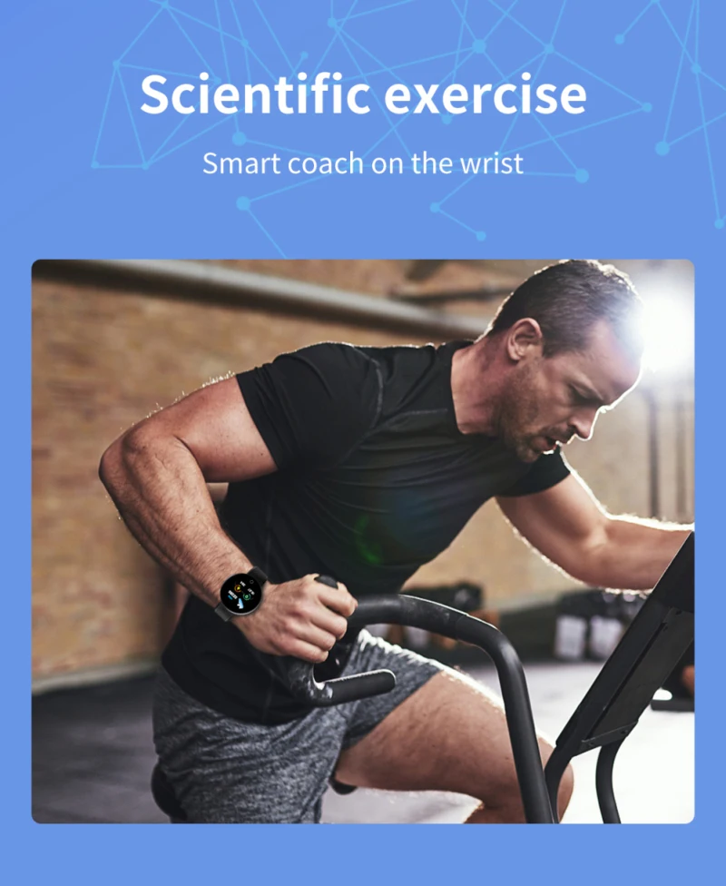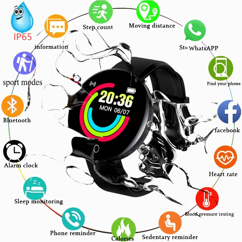 IP65 Водонепроницаемый для повседневной жизни, мульти-спортивный режим, подходит для занятий спортом на открытом воздухе. Автоматически записывает ежедневный шаг движения и данные о калориях.