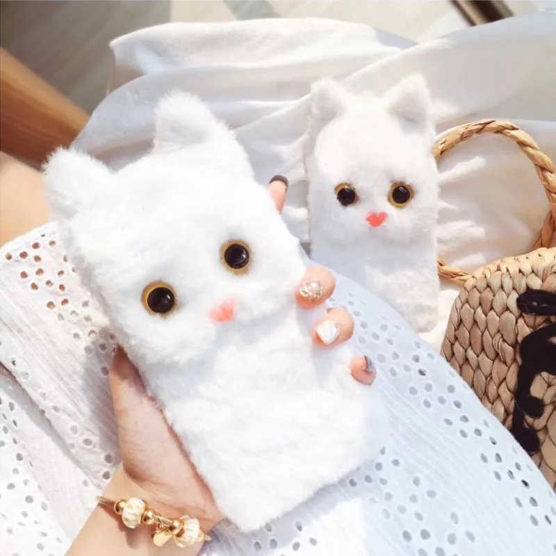 Пушистый силиконовый чехол для телефона, милый плюшевый чехол с кош...