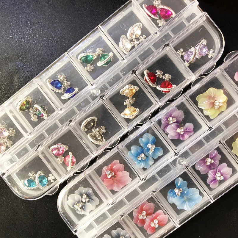 1 коробка 3D ногтей акриловый цветок планет сплав дизайн ногтей модные подвески стразы маникюр пресс накладные ногти принадлежности аксессуары