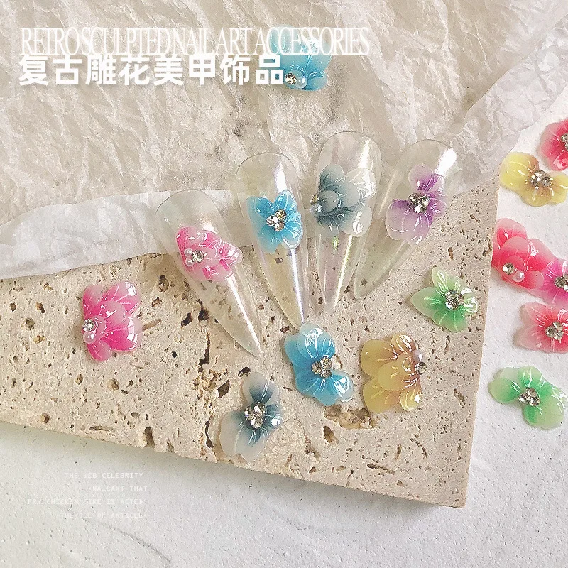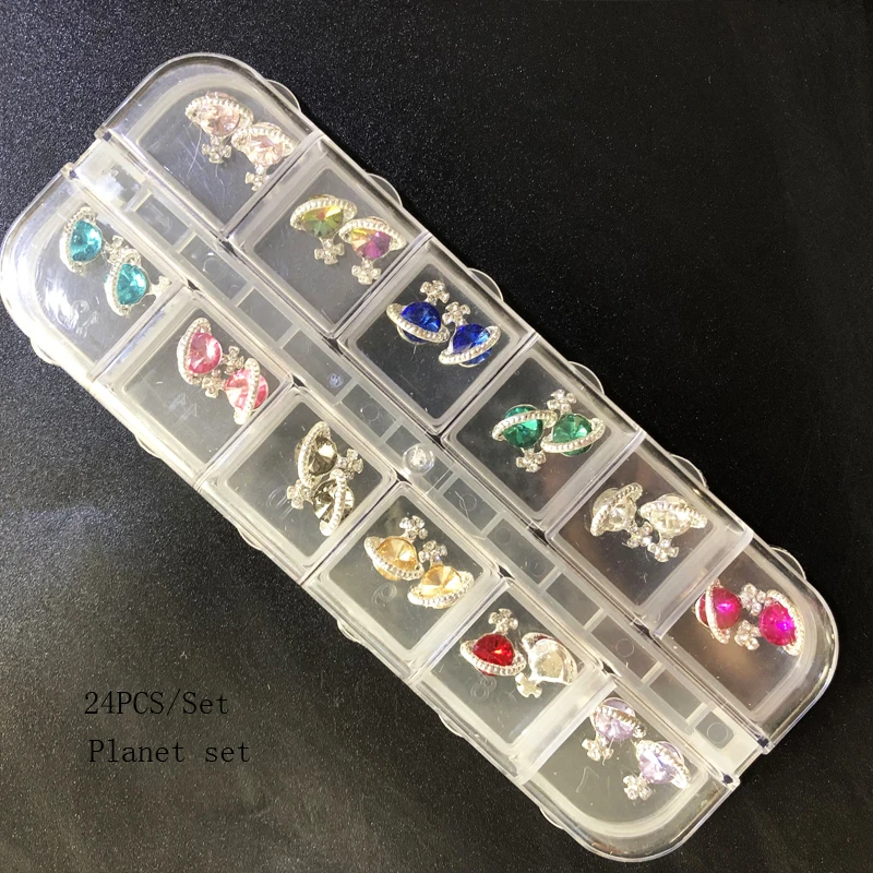 1 коробка, 3D Ногти, акриловый цветок, планеты, сплав, искусство для ногтей, трендовые амулеты, стразы, маникюрный пресс на кончиках, принадлежности для ногтей, аксессуары