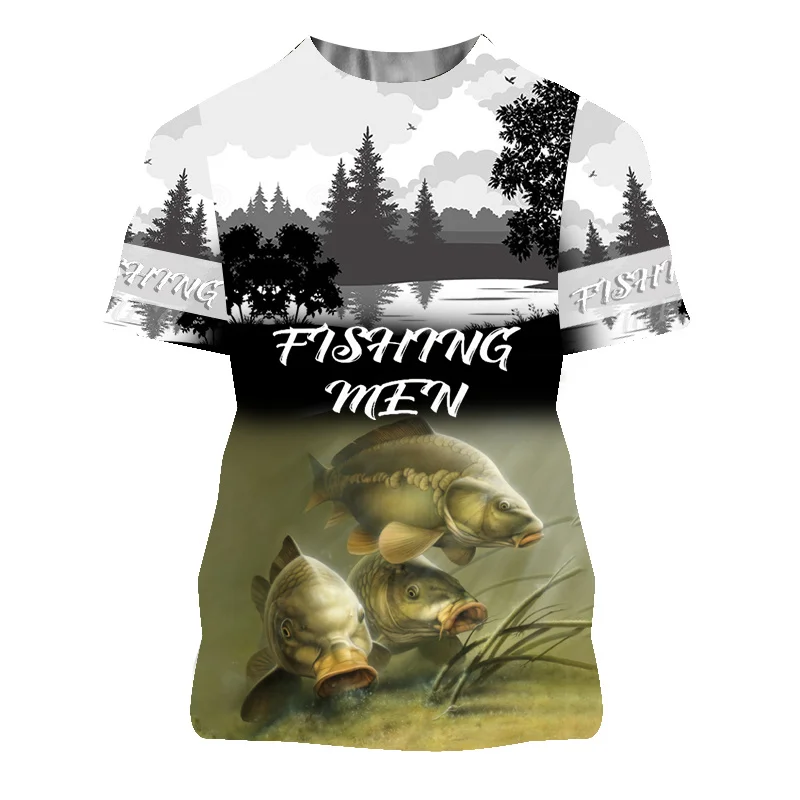Футболка мужская быстросохнущая с коротким рукавом, дышащая уличная одежда в стиле унисекс, с 3D-принтом реки карпа и рыбы, Топ в стиле Харадзюку, на лето