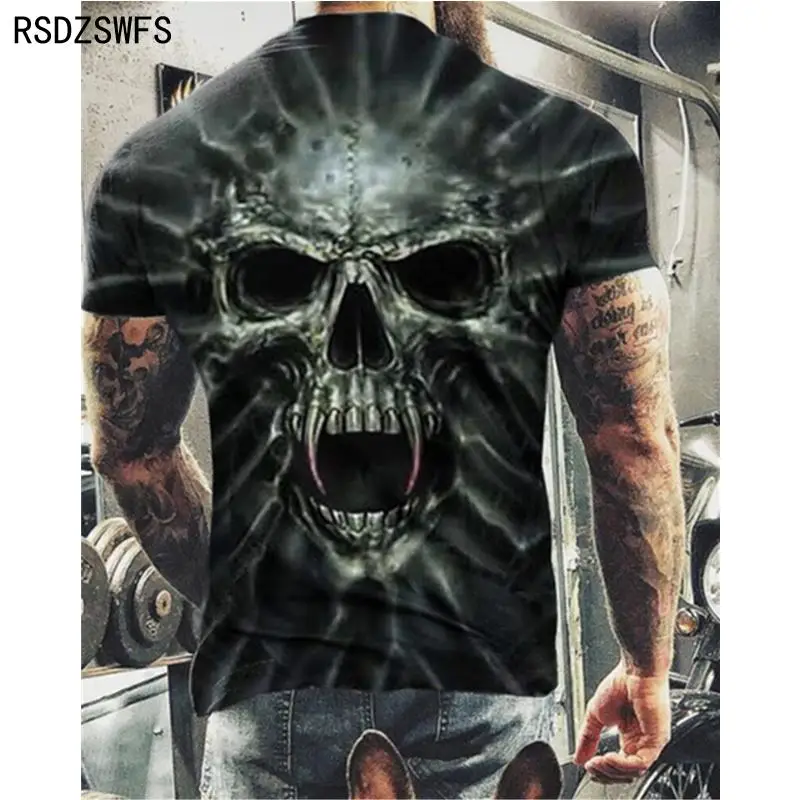 Футболка мужская с 3D-принтом черепа, модная повседневная одежда оверсайз с круглым вырезом и короткими рукавами, уличная одежда в стиле хип-хоп, лето