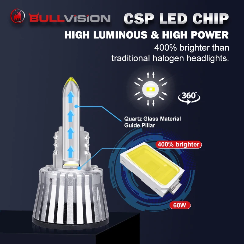 Светодиодный налобный фонарь H7 использует индивидуальные чипы CSP, 20,000лм, 120 Вт в комплекте, на 400% ярче, чем галогенные фары.