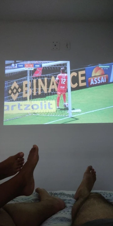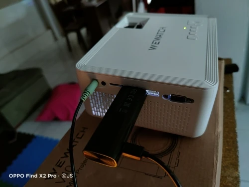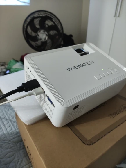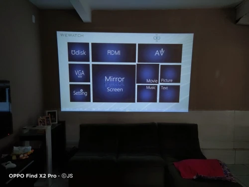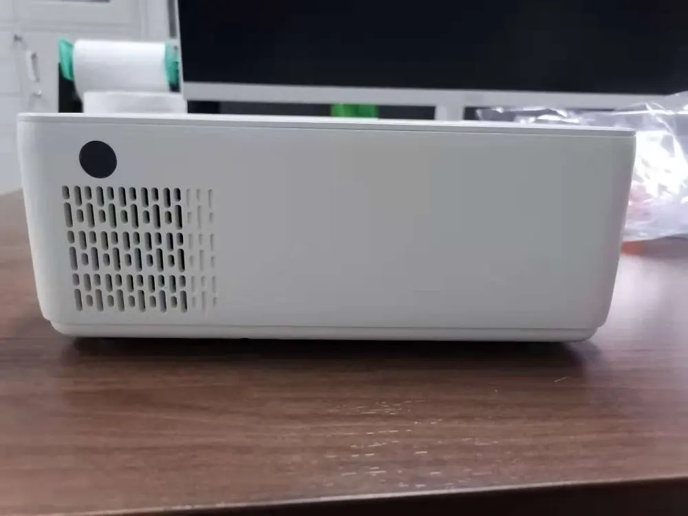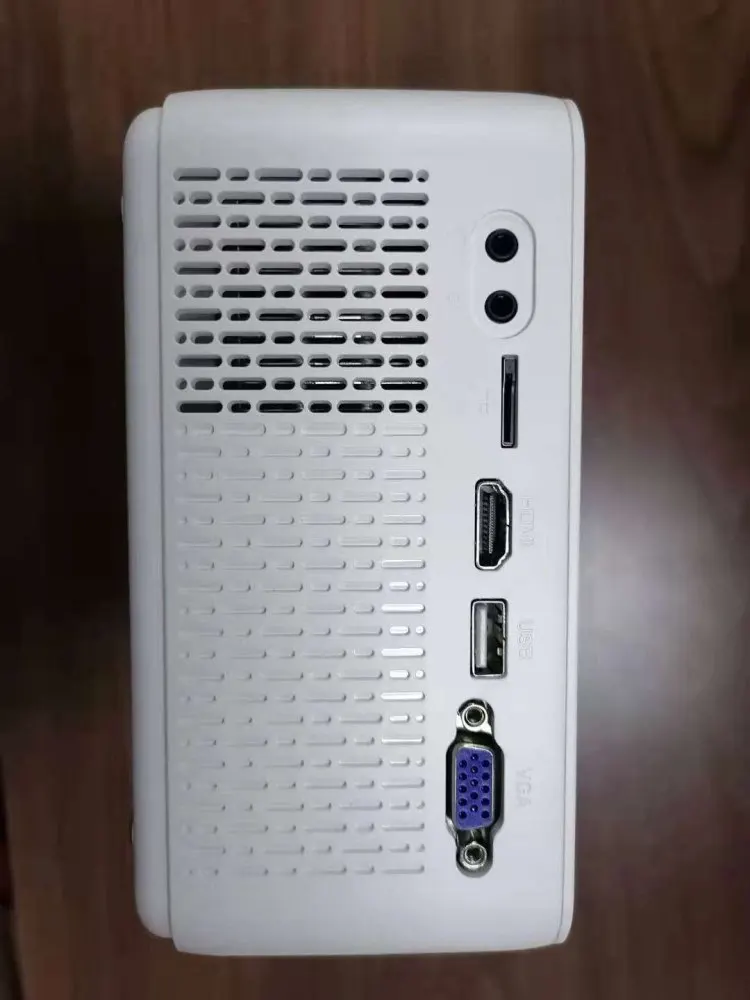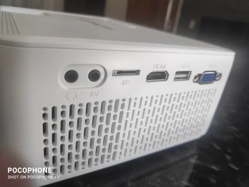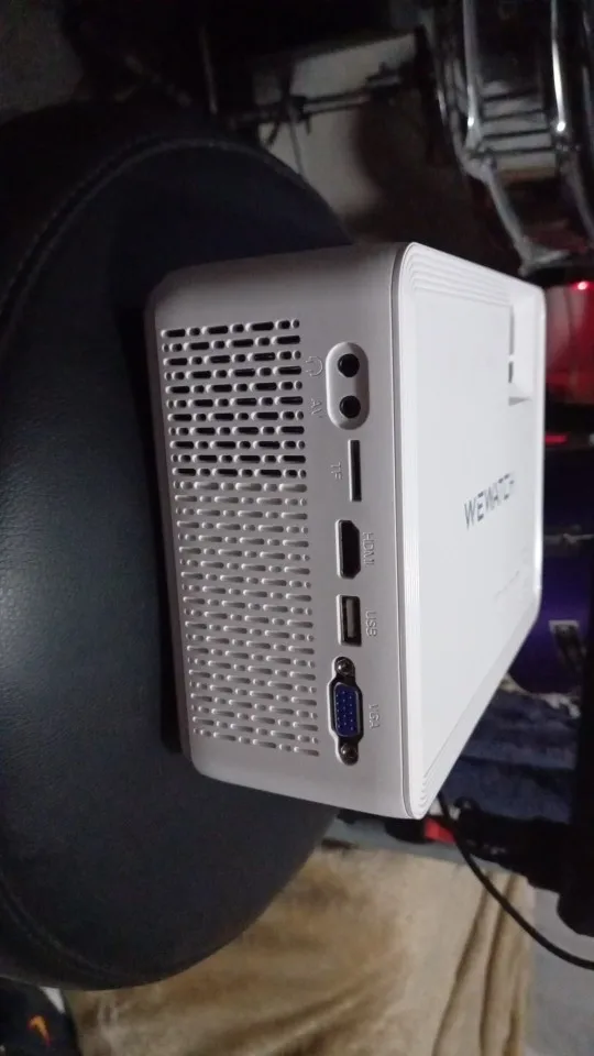 Me surpreendeu com a qualidade de imagem, conectei um tv Box pelo HDMI. Ele tem auto falante embutido. A lente veio com um pequeno arranhão próximo a borda, mas não atrapalha a imagem. Testei por meia hora e esquentou bastante, precisa de um ambiente refrigerado.