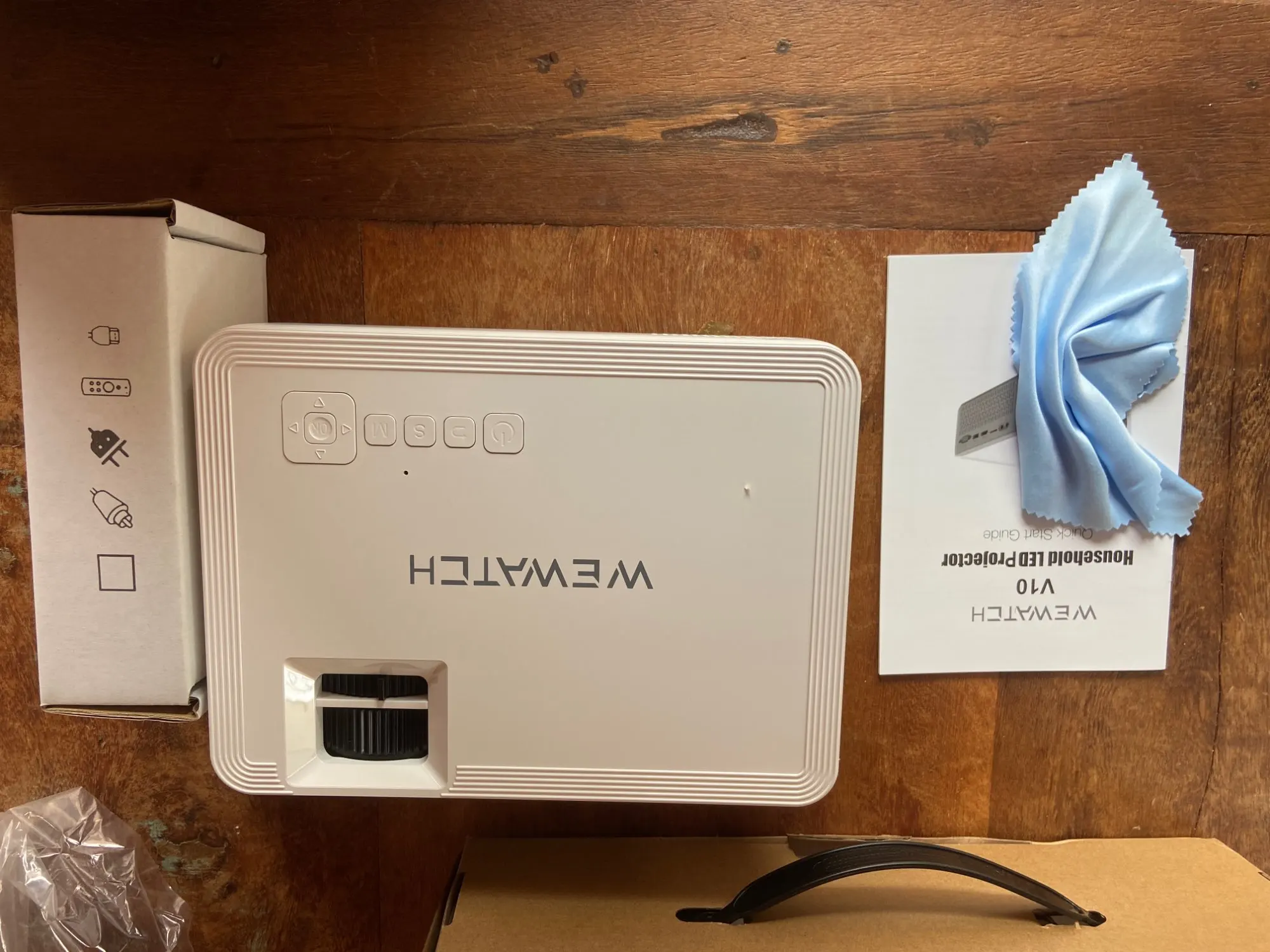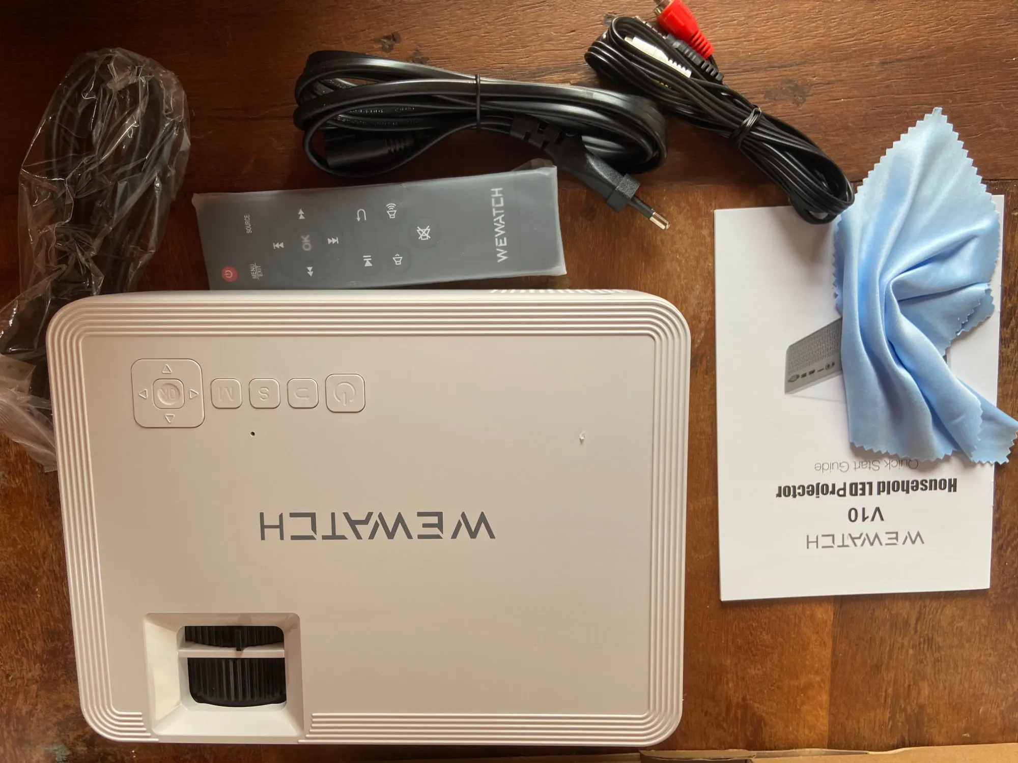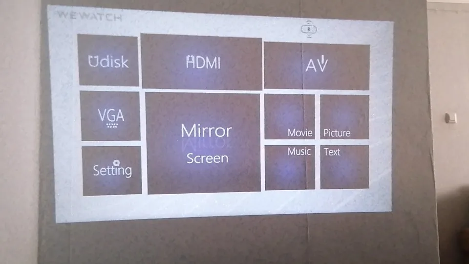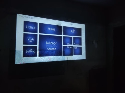 Для своей цены проектор на отлично! Провода, пульт в комплекте. Возможен просмотр с телефона, флэшки и карты памяти, к fi-wi подключается, блютуз тоже рабочий. Из минусов только отсутствие русского языка . Проба сделана на потолке, без экрана и при плохом затенении.