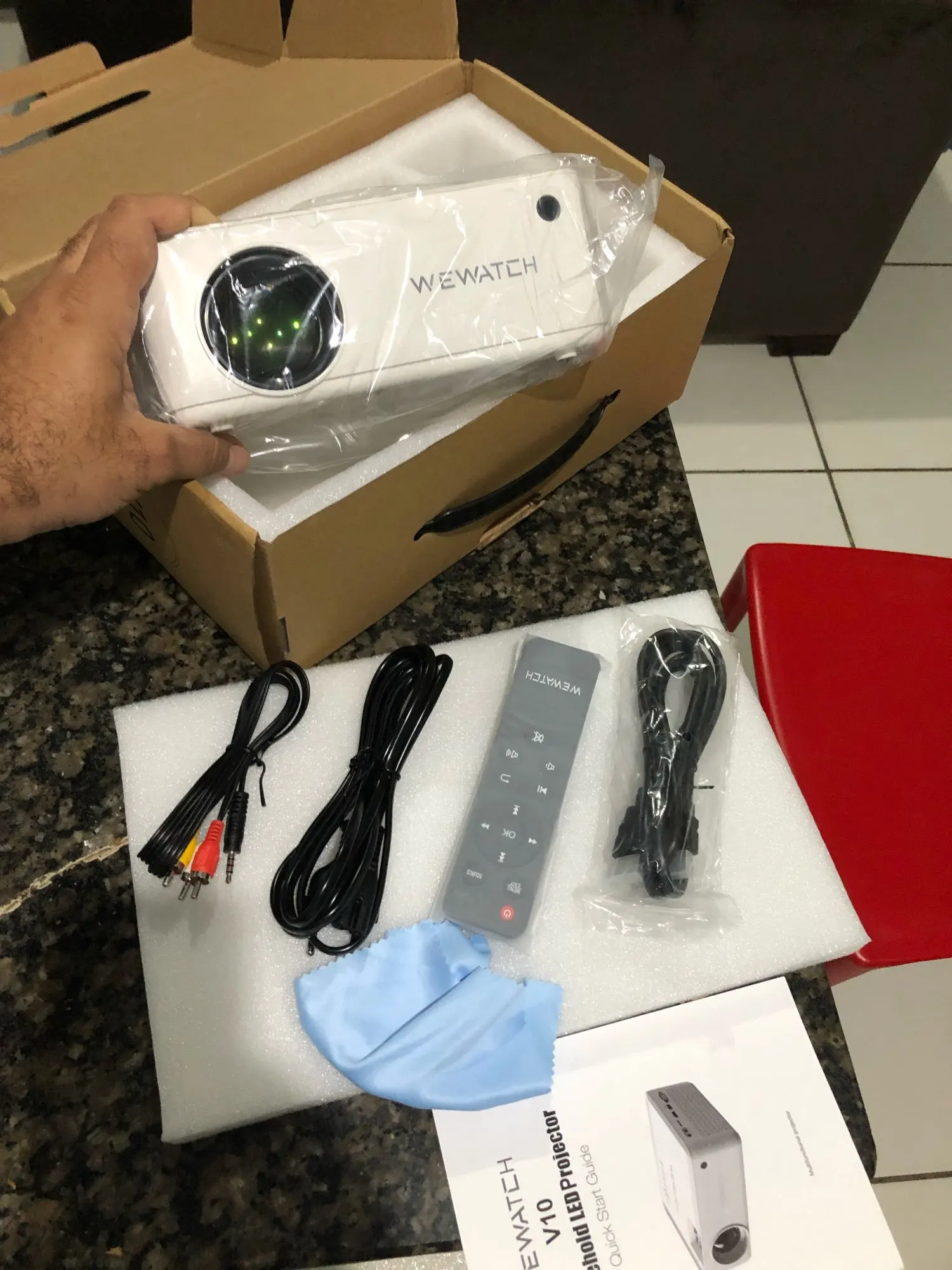 С доставкой этого товара в Литву целая эпопея: первая высланная продавцом посылка почему-то поездила по Китаю и вернулась назад к продавцу. Вторая попытка была удачной: посылка доехала ко мне за 57 дней. Трек номер отслеживался постоянно. Упаковка хорошая. Проектор качественный и соответствует описанию. Комплектация видна на фотографиях. Надо отметить очень информативную инструкцию на английском языке с цветными иллюстрациями. К проектору докупил большой экран этой же фирмы и в этом же магазине. Продавец общительный, быстро отвечает на вопросы. Проектор купил по акции "супер скидки", по очень вкусной цене. Покупкой очень доволен, большое спасибо АлиЭкспрессу и продавцу за такие акции!