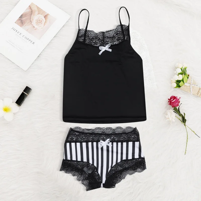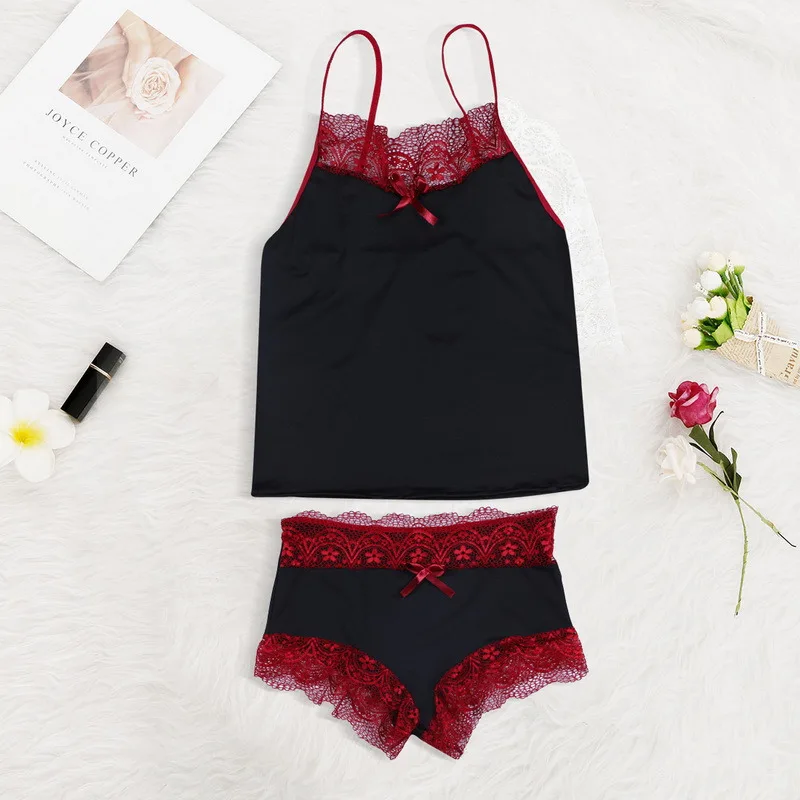 Цвет: 1, 2, 3, 4, 5, 6Размер: S, M, L, XLМатериал: полиэстерОсобенности: мягкий, эластичный, сексуальныйСтиль: пикантный Пижамный костюмДизайн: кружевная строчка, печать