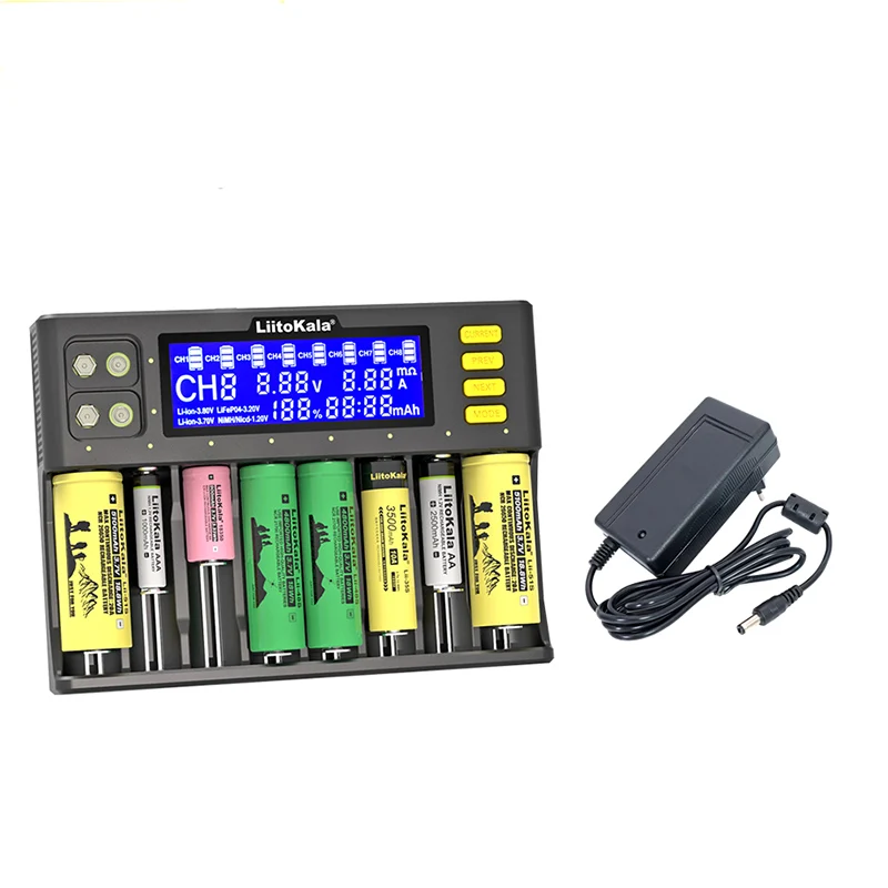 Входное напряжение: 12 В/4 а постоянного токаВыход напряжение: DC 4,2 V/1,48 V DC/DC 3,65 V / DC 4,35 V / 9VВыходной токТок зарядки литиевой батареи:2000ма * 4 / (300мА/500мА/700мА/1000мА) * 8NiMH ток зарядки аккумулятора: 500 мА * 8Ток зарядки аккумулятора 9 В: 85 мА * 2Характеристики аккумуляторной батареи: 26650,21700,18650,18350, 20650,14500, AA, AAA, C,SC 9V и т. Д.Метод прерывания: Интеллектуальный контроль напряженияРазмеры: 195 мм (длина) * 142 мм (ширина) * 35 мм (высота).