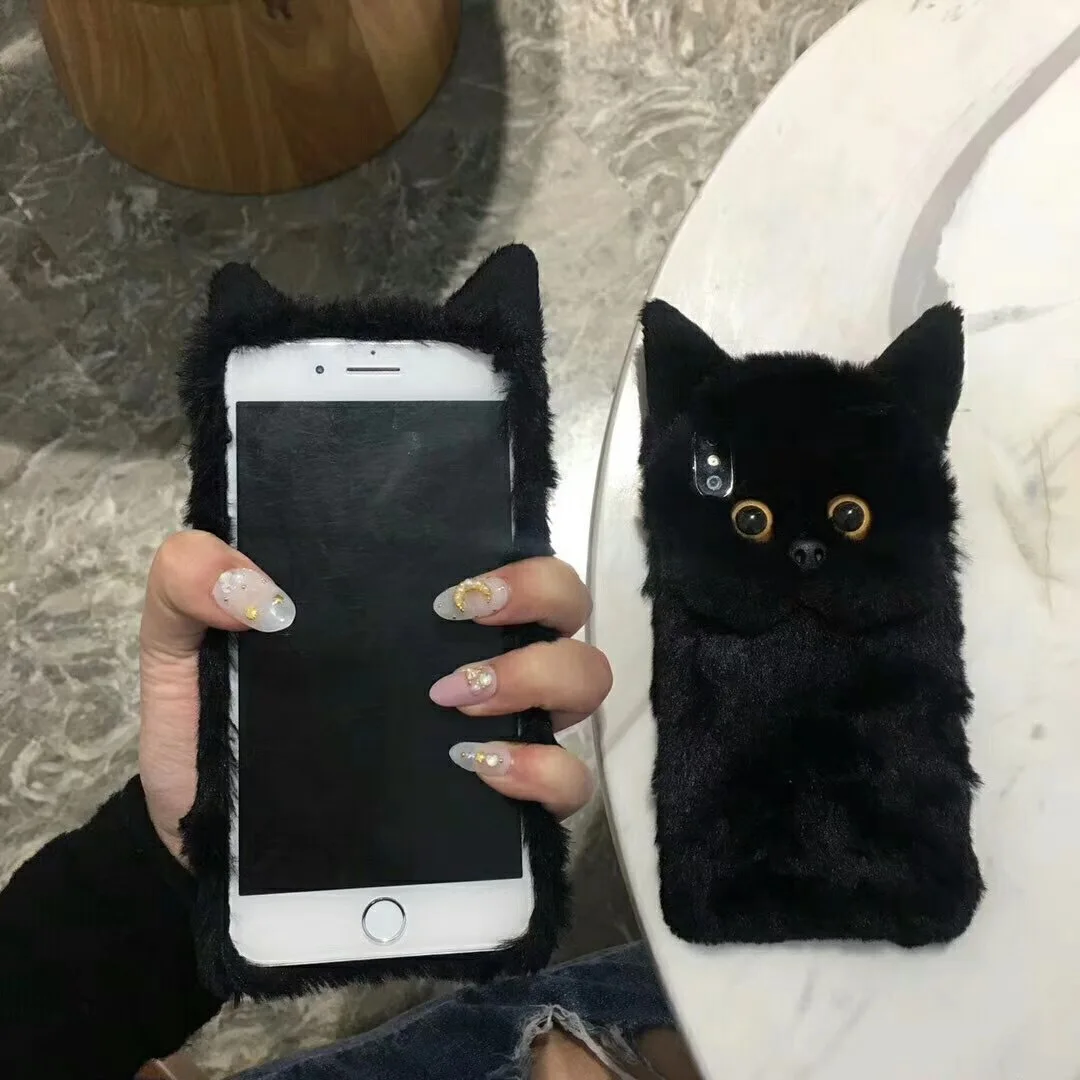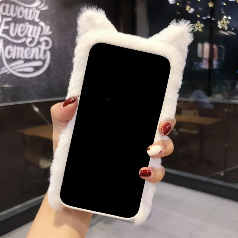 Featuresfashion Fluffy cat Fur Cute Silicone Cover Bunny Plush Phone Case