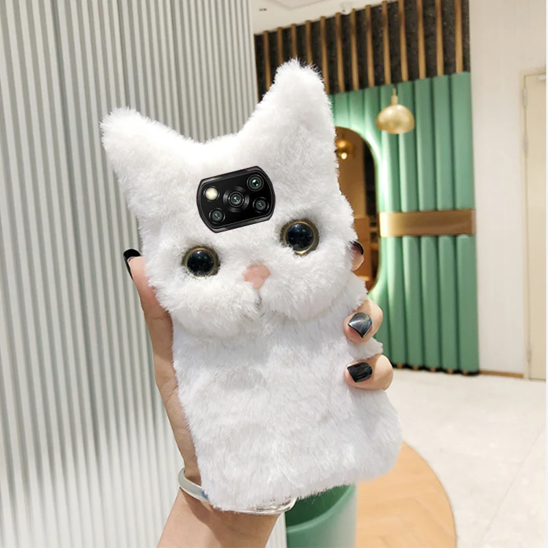 POCO X3 NFC Чехлы, пушистый кот, силиконовый чехол для телефона Xiaomi POCO X3 Pro F3 C3 PCCO M3, чехол, плюшевый Меховой чехол, чехол для Redmi 9C, чехол
