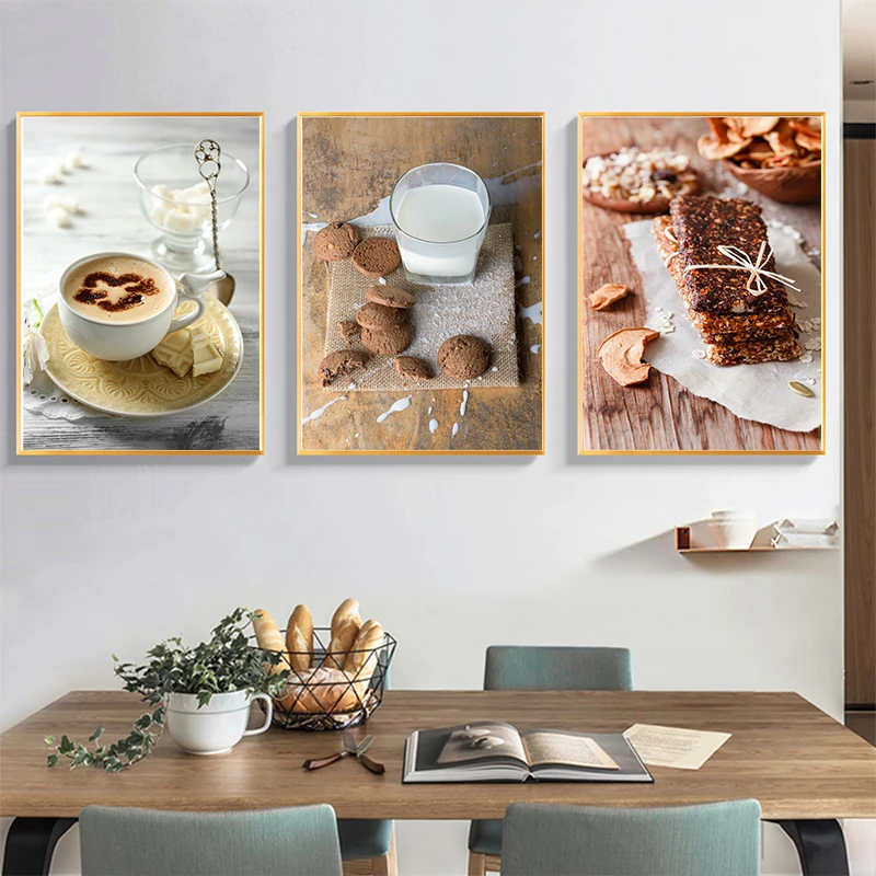 Настенная картина с изображением еды, напитков, вафель, кофе, молока, кофейных зерен, настенная Картина на холсте, кухонные картины, постер, печать для столовой, домашний декор