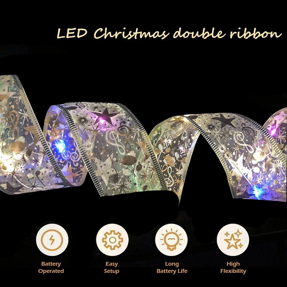 Двухслойная Рождественская лента со светодиодной подсветкой, 4 м, 1...