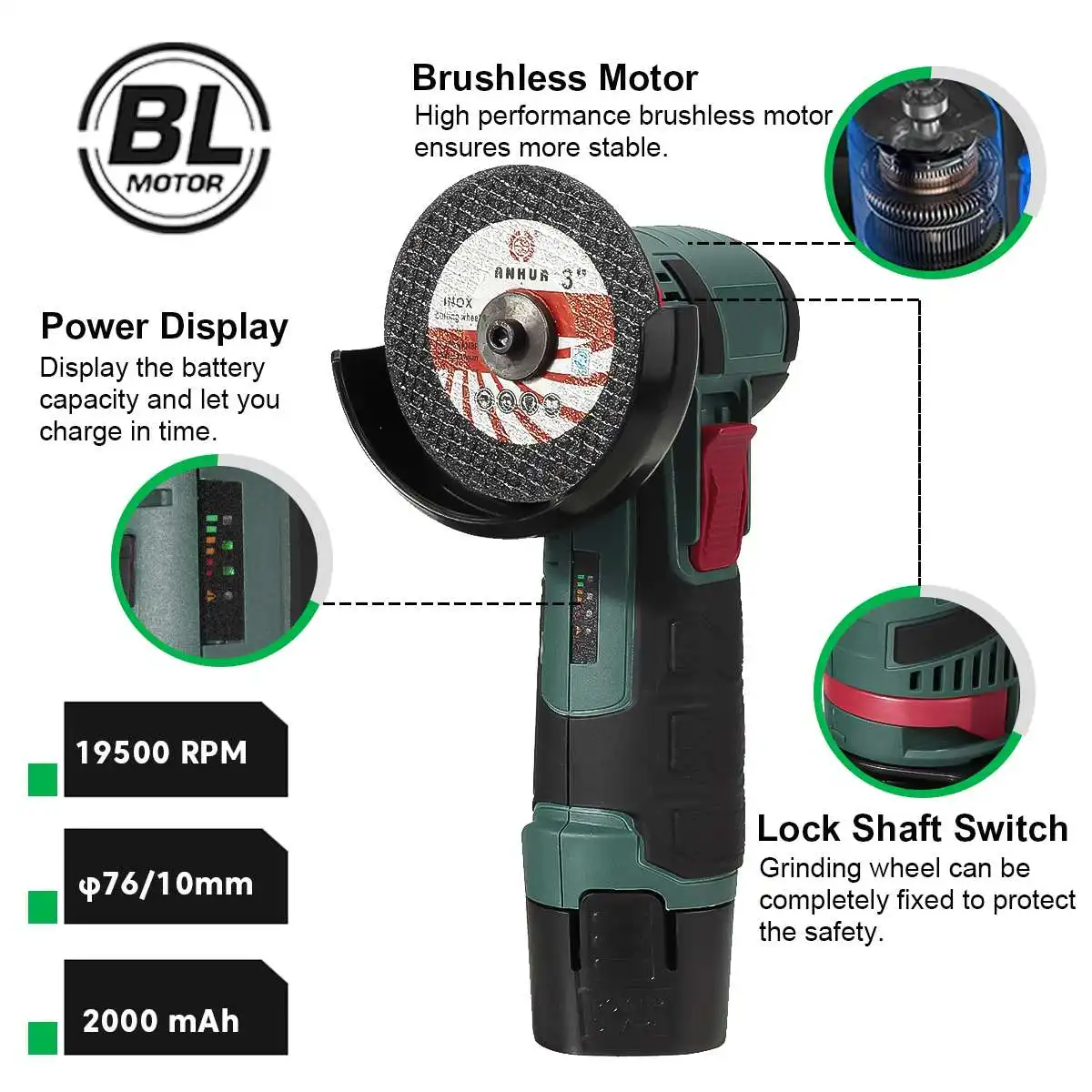 Беспроводная угловая шлифовальная машина, 12 В, 2000 Вт, 19500 обмин