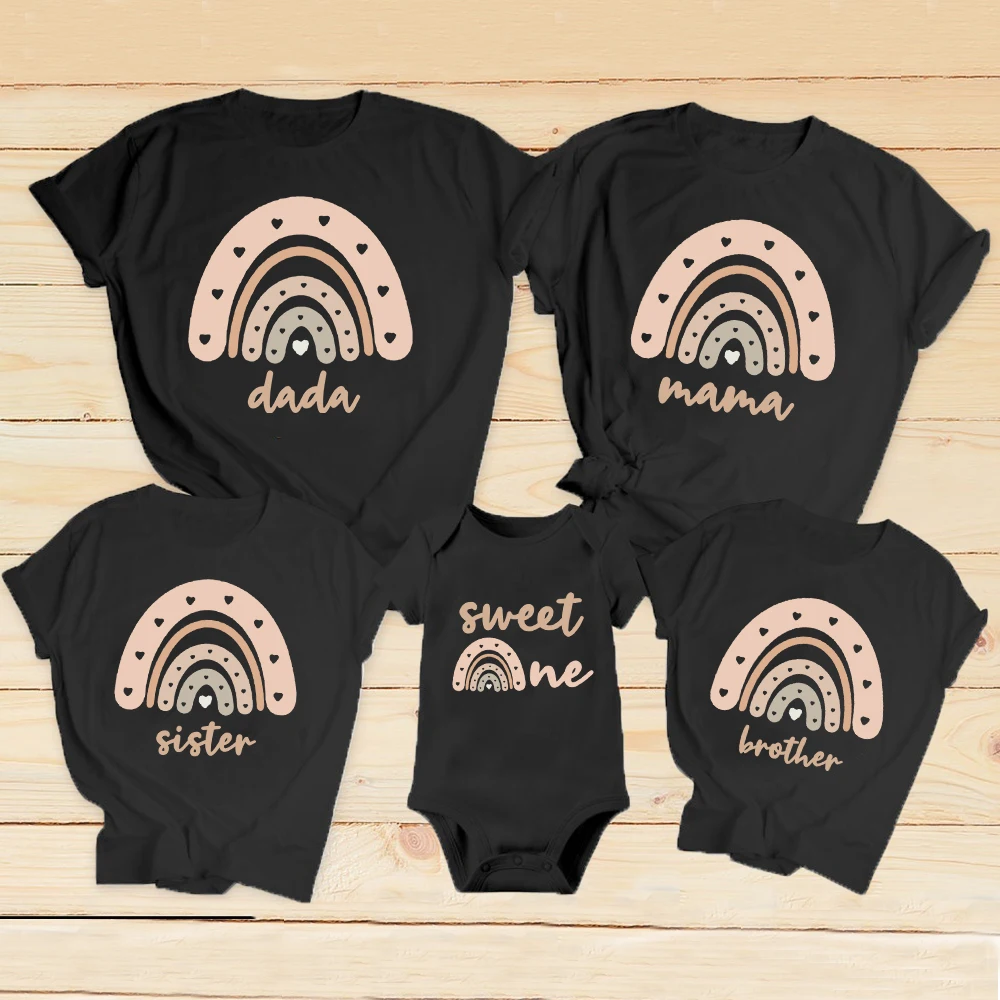 Папа, мама, брат, сестра, милый ребенок, семья, радуга, одежда комбинезон для мальчиков и девочек, боди, Детские футболки, вечерние, подарок на день рождения
