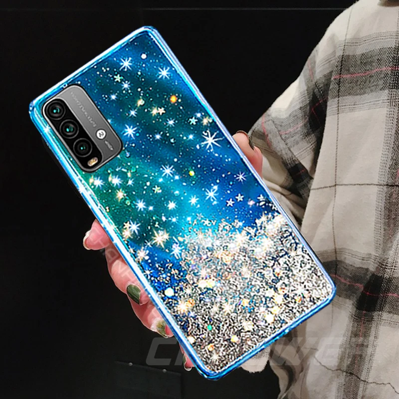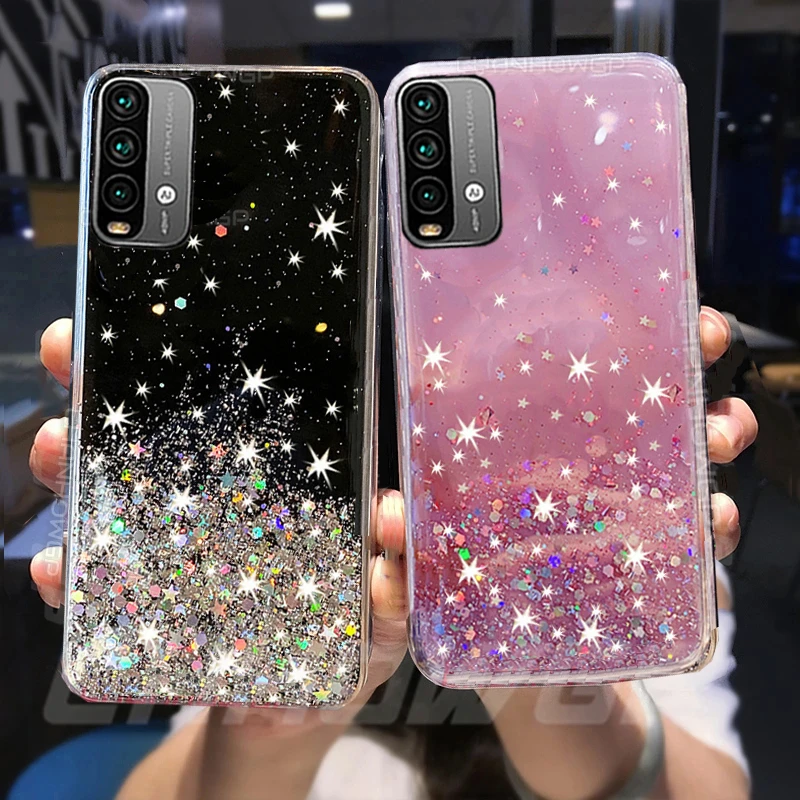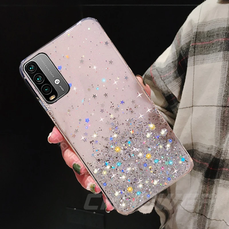 Блестящий Прозрачный чехол Bling Star для Xiaomi Redmi Note 10 Pro 10S 9T 9S 9 8T 8 Pro 9A 9AT 9C Poco X3 NFC M3 Pro, мягкий силиконовый чехол
