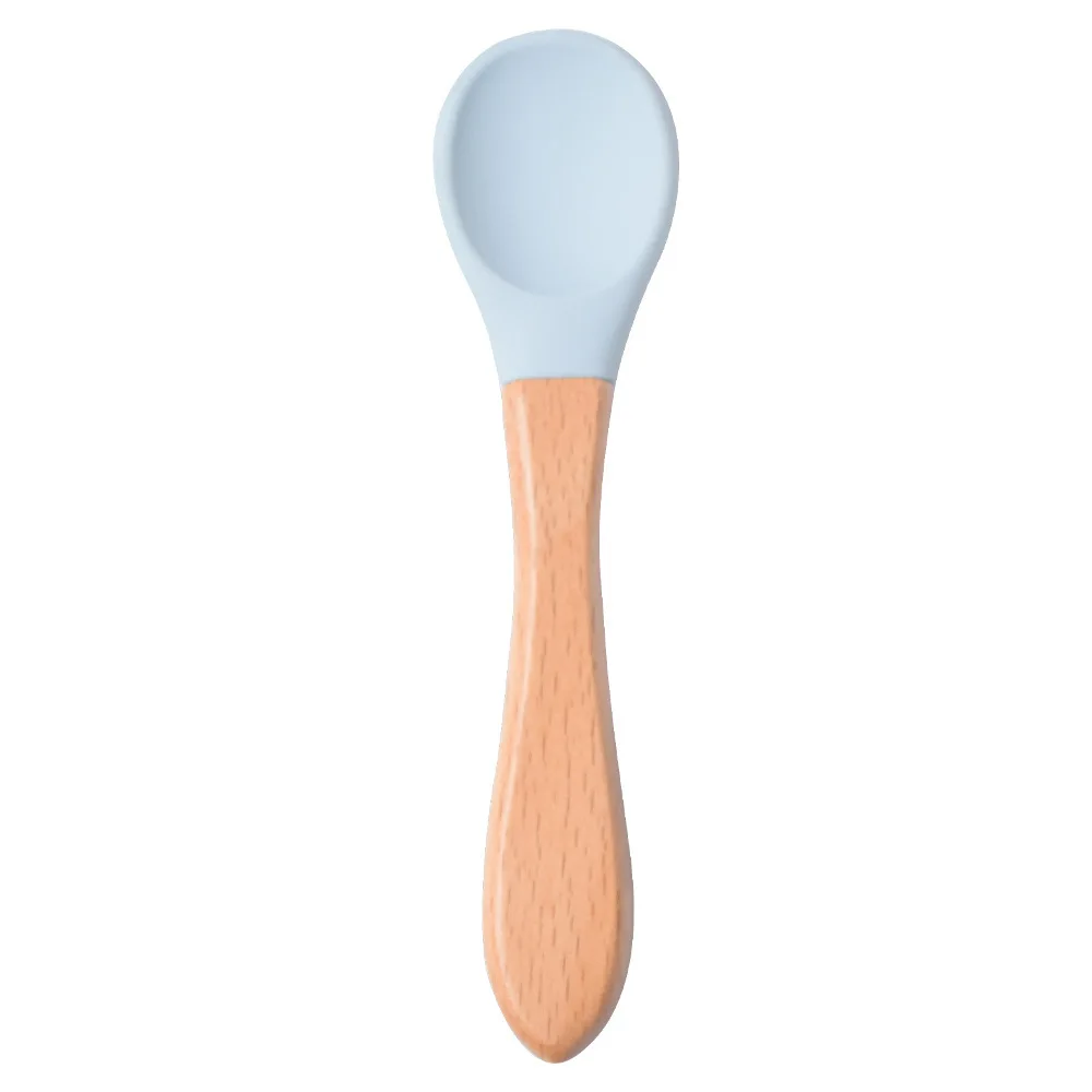 Силиконовая ложка, деревянная ручка для кормления, детская посуда