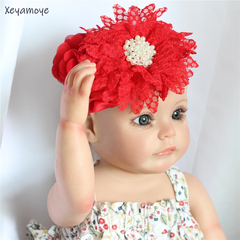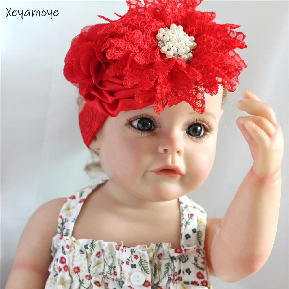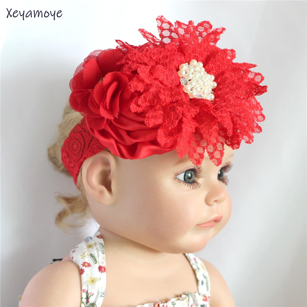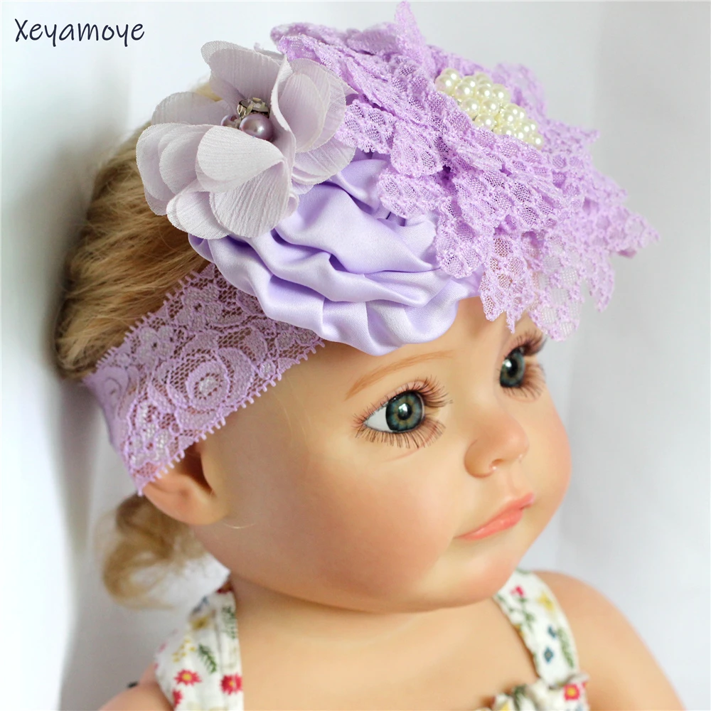Детская фотография, реквизит, головной убор, Шифоновый Цветок с алмазным кружевом, широкая повязка на голову для детской фотографий