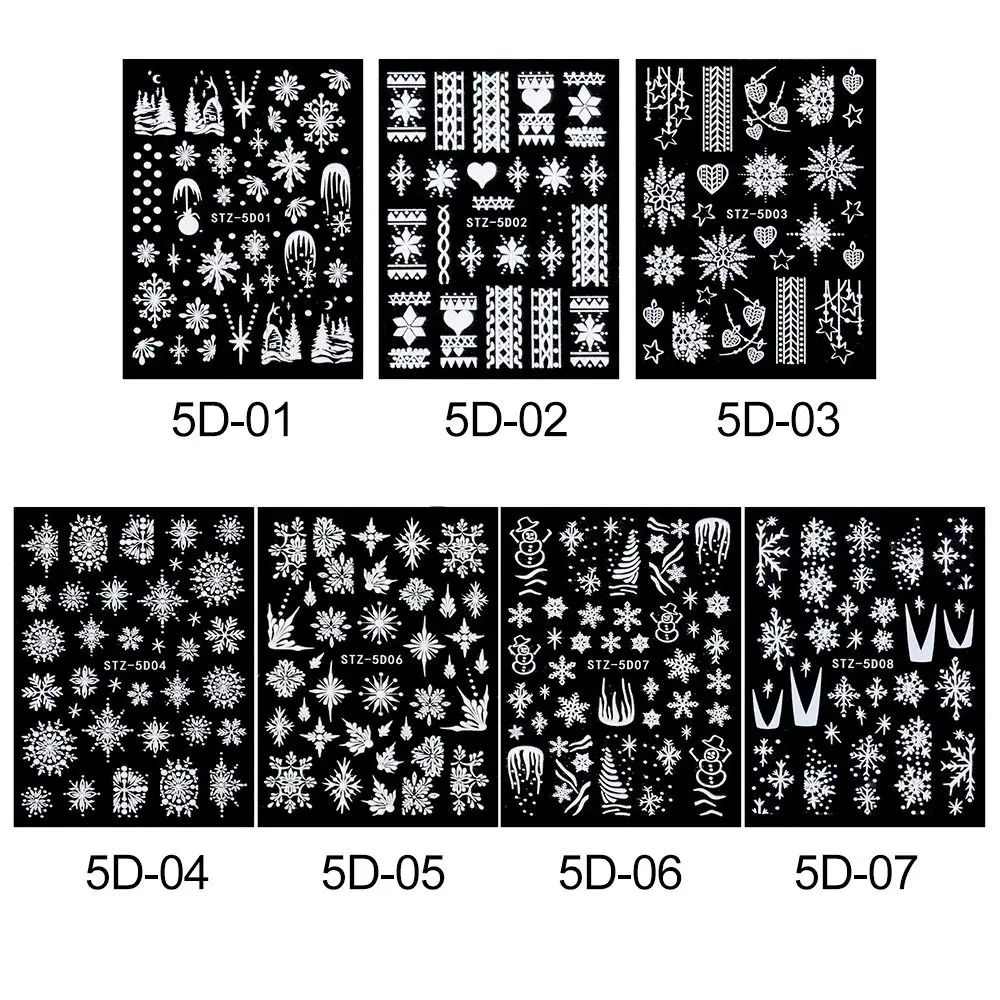5D Белые снежинки, тисненые наклейки для ногтей, Рождество, Новый Г...