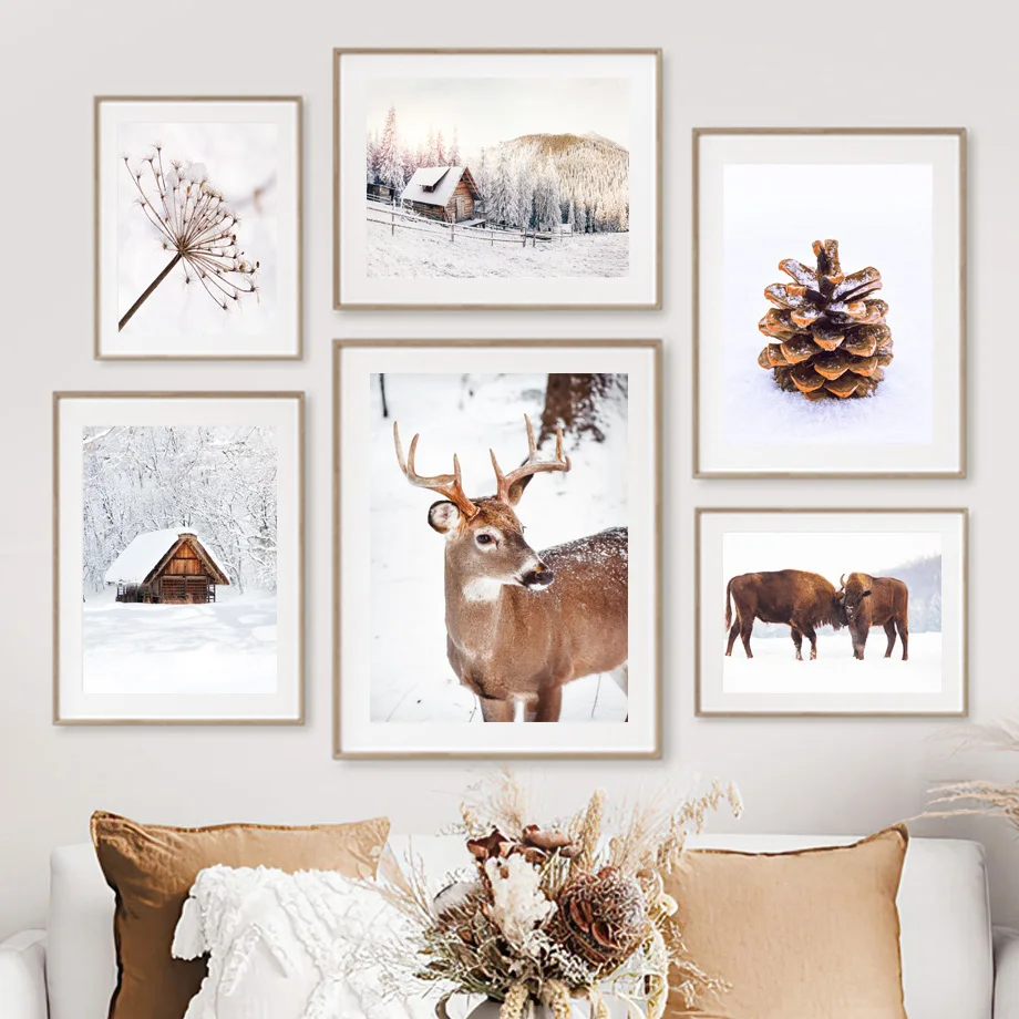 Трава тростник олень кедр стена искусство холст живопись деревня дорога Зимний лес плакат и печать картины живой Рождество домашний декор