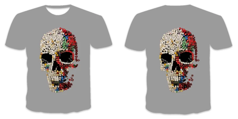 Футболка мужская с коротким рукавом и 3D-принтом черепа, Спортивная дышащая повседневная Уличная одежда в стиле хип-хоп, с круглым вырезом, большие размеры, на лето