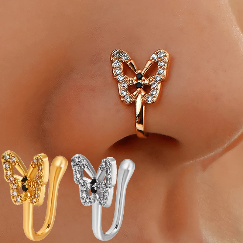 1 шт. медное кольцо для имитации пирсинга в носу Хрустальная Бабочк...