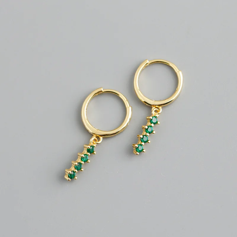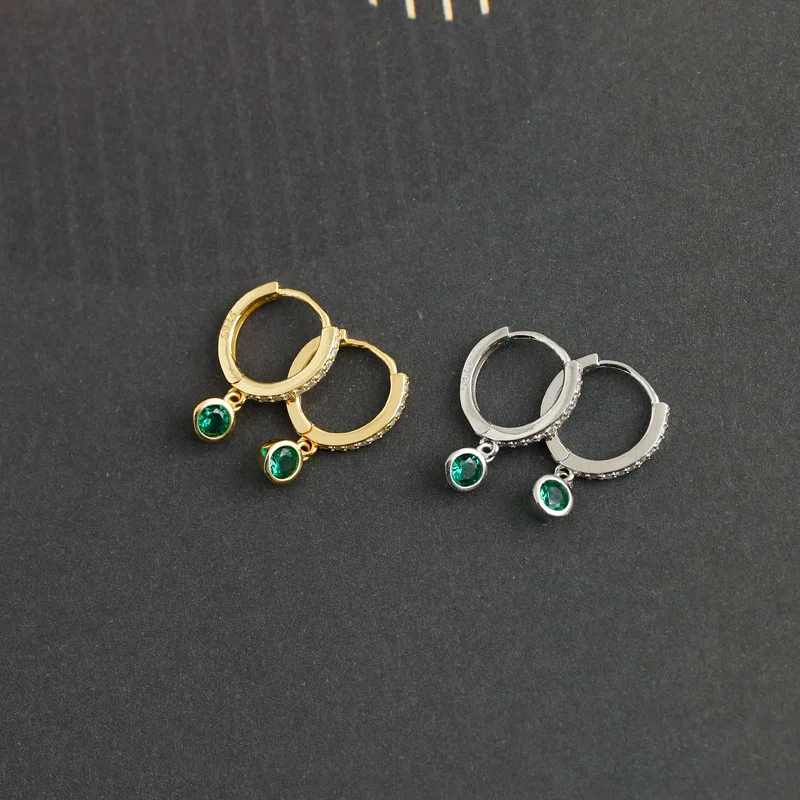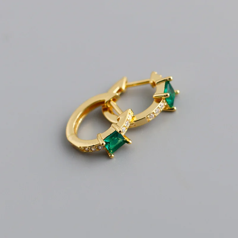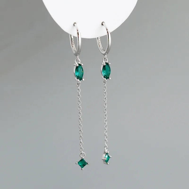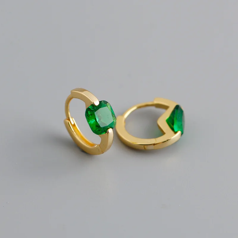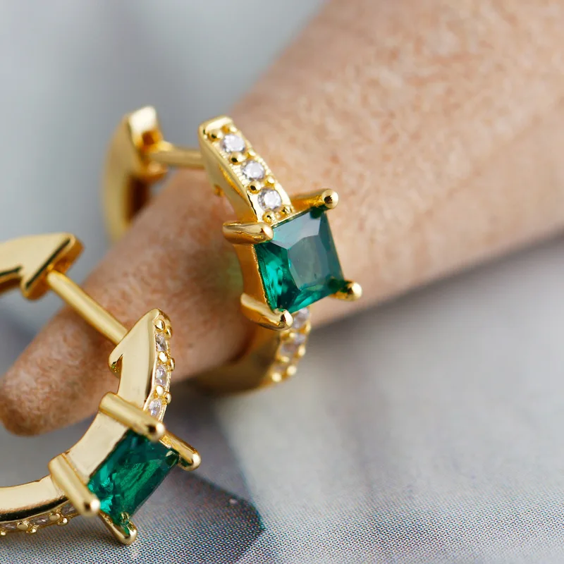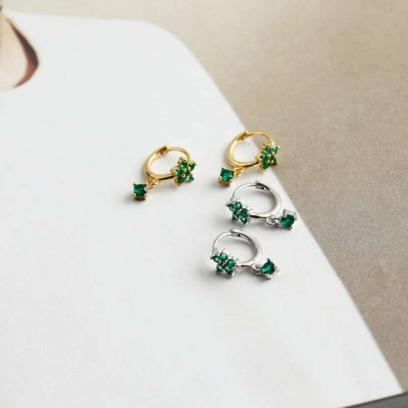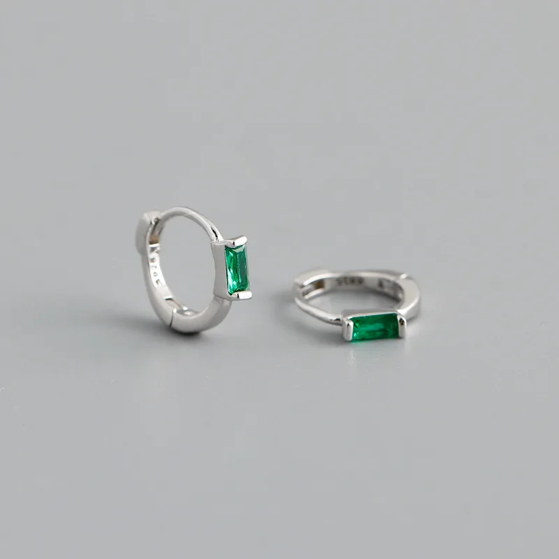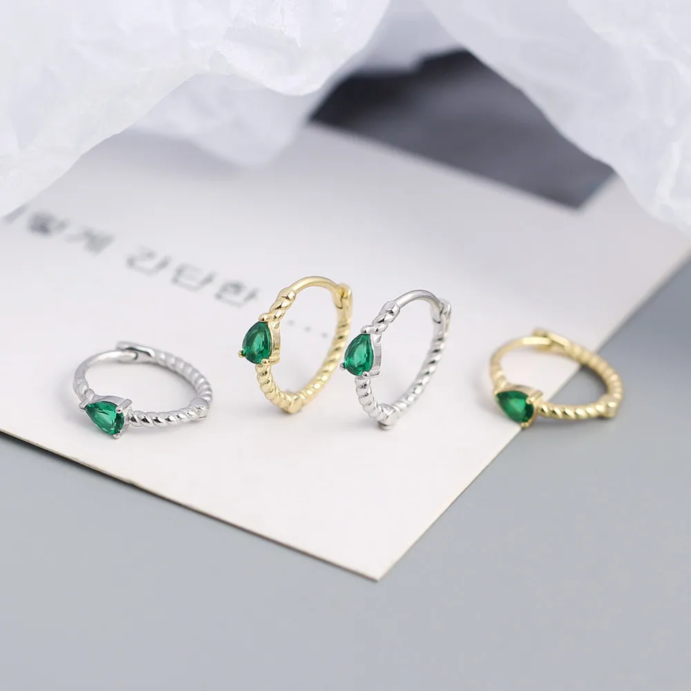 Серьги-кольца CCFJOYAS из серебра 925 пробы с зеленым цветом