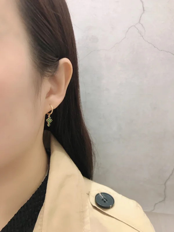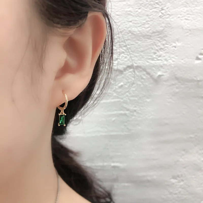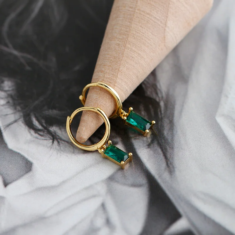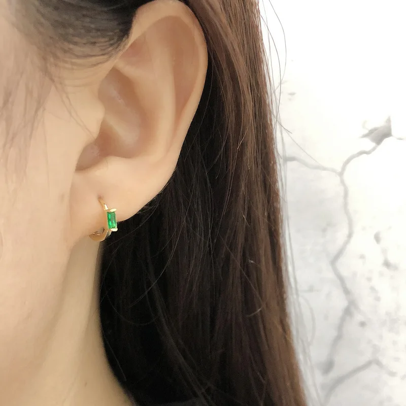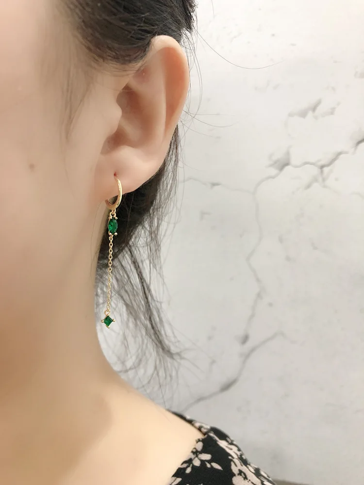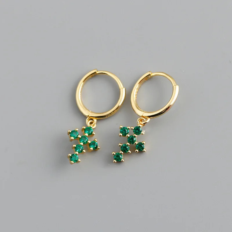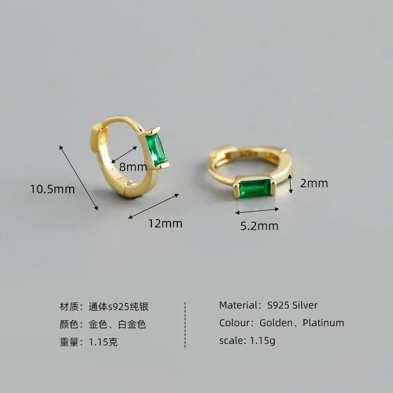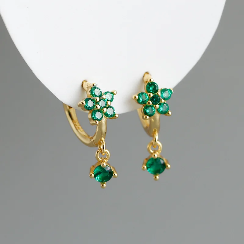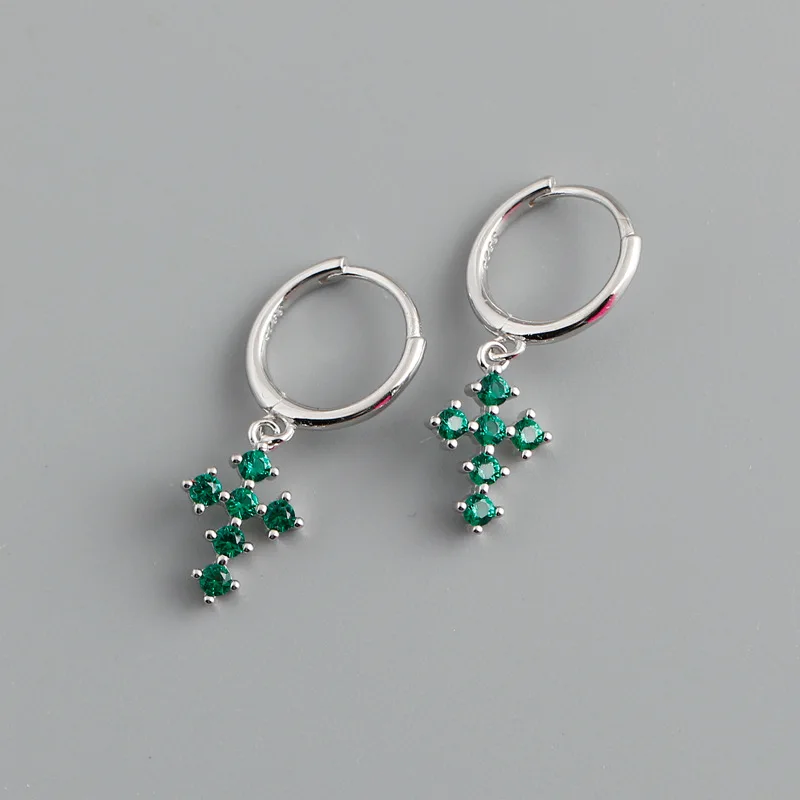 Серьги-кольца CCFJOYAS из серебра 925 пробы с зеленым цветом