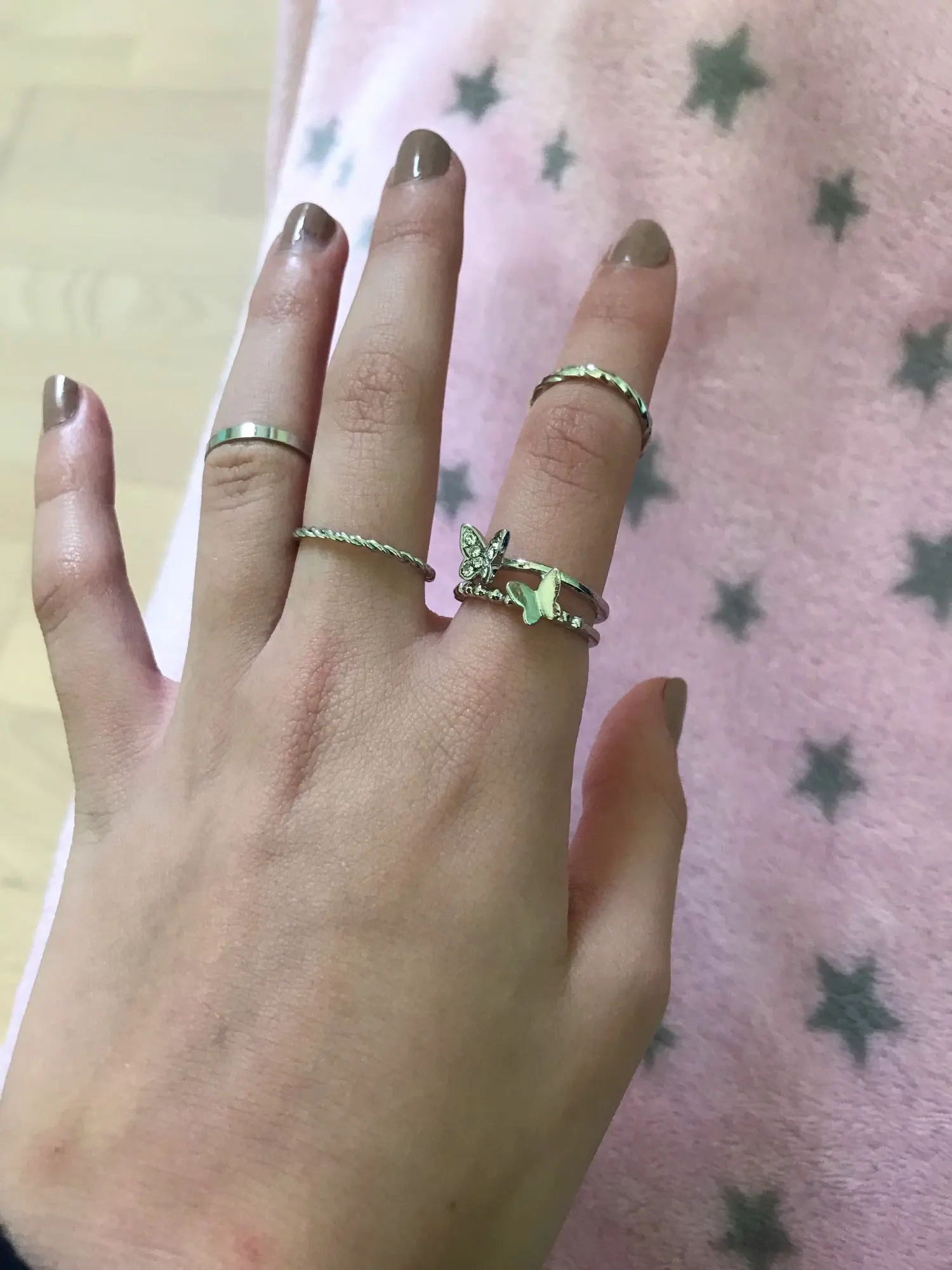 из этого набора понравилось только кольцо с бабочкой, все остальные похожи на обычные металлические прутики, которые свернули в кружок