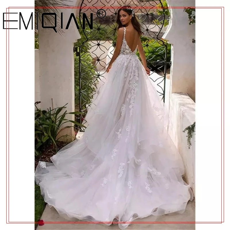 Платье свадебное длинное ТРАПЕЦИЕВИДНОЕ с открытой спиной, на тонких бретельках