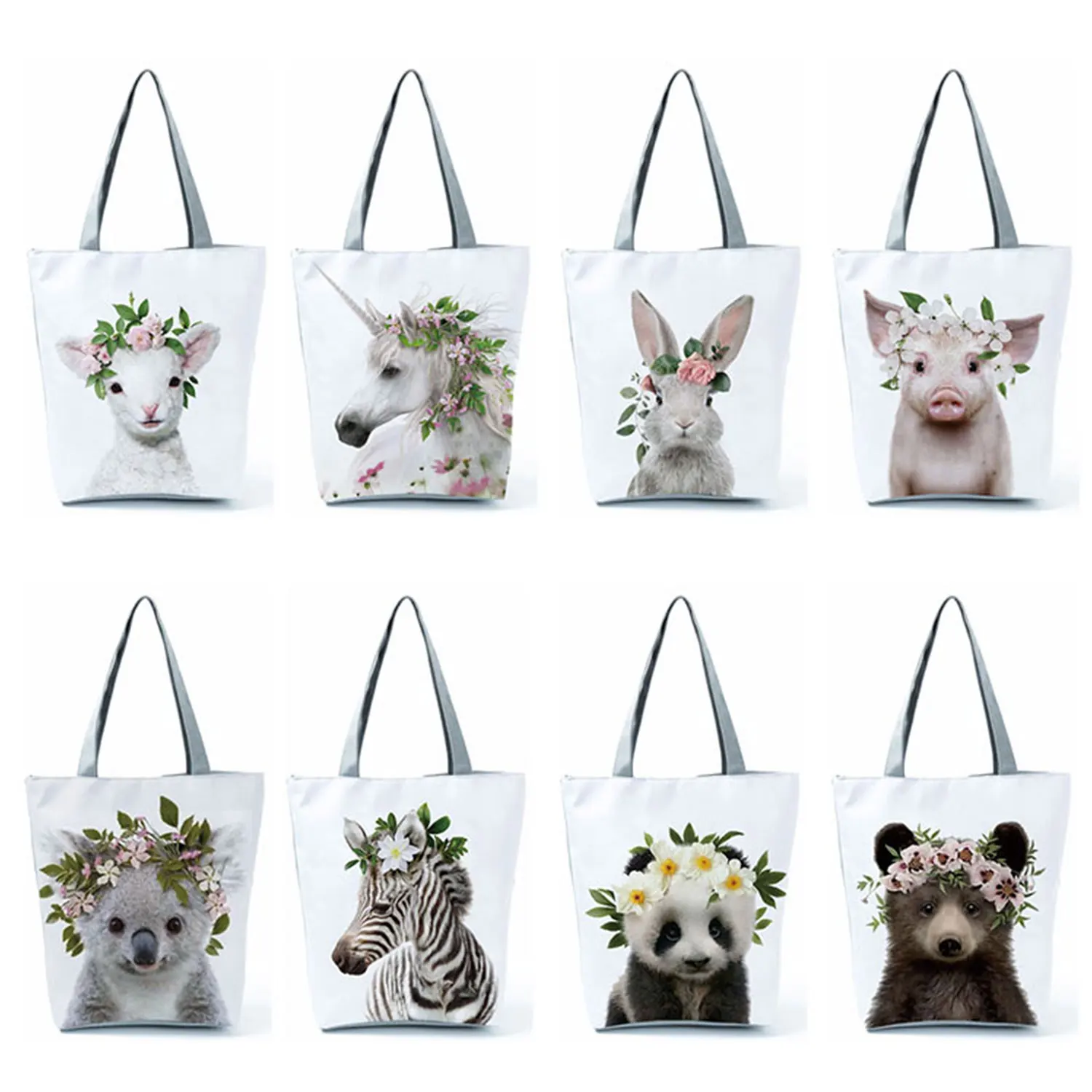 Сумка-тоут панда женская с принтом слона, повседневная сумочка-тоут для покупок с милыми животными, Большая вместительная сумка на плечо