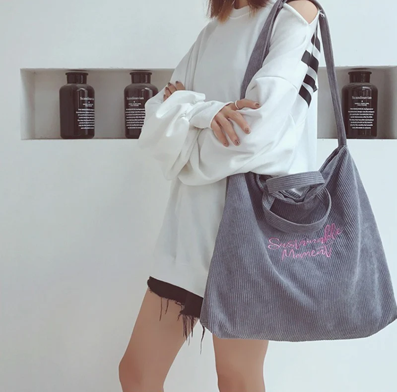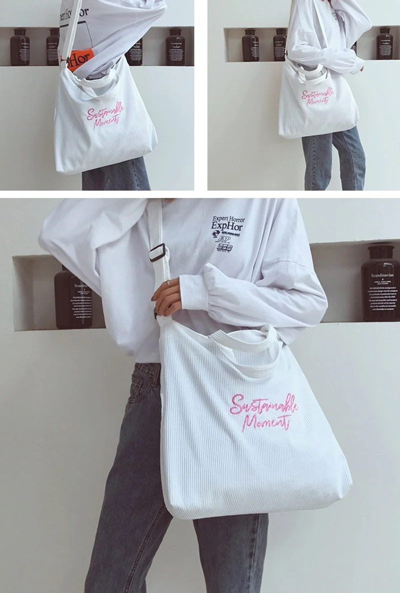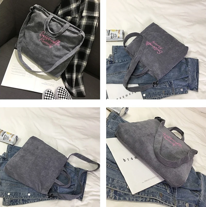 Вельветовая Холщовая Сумка-тоут для женщин, повседневный складной м...