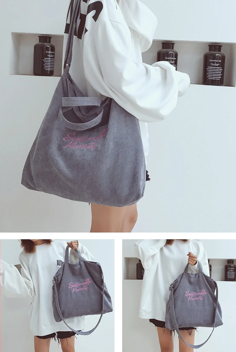 Простая стильная зимняя Вельветовая сумка через плечо для женщин, Большая вместительная сумка под подмышку, повседневная большая сумка для покупок, Женская