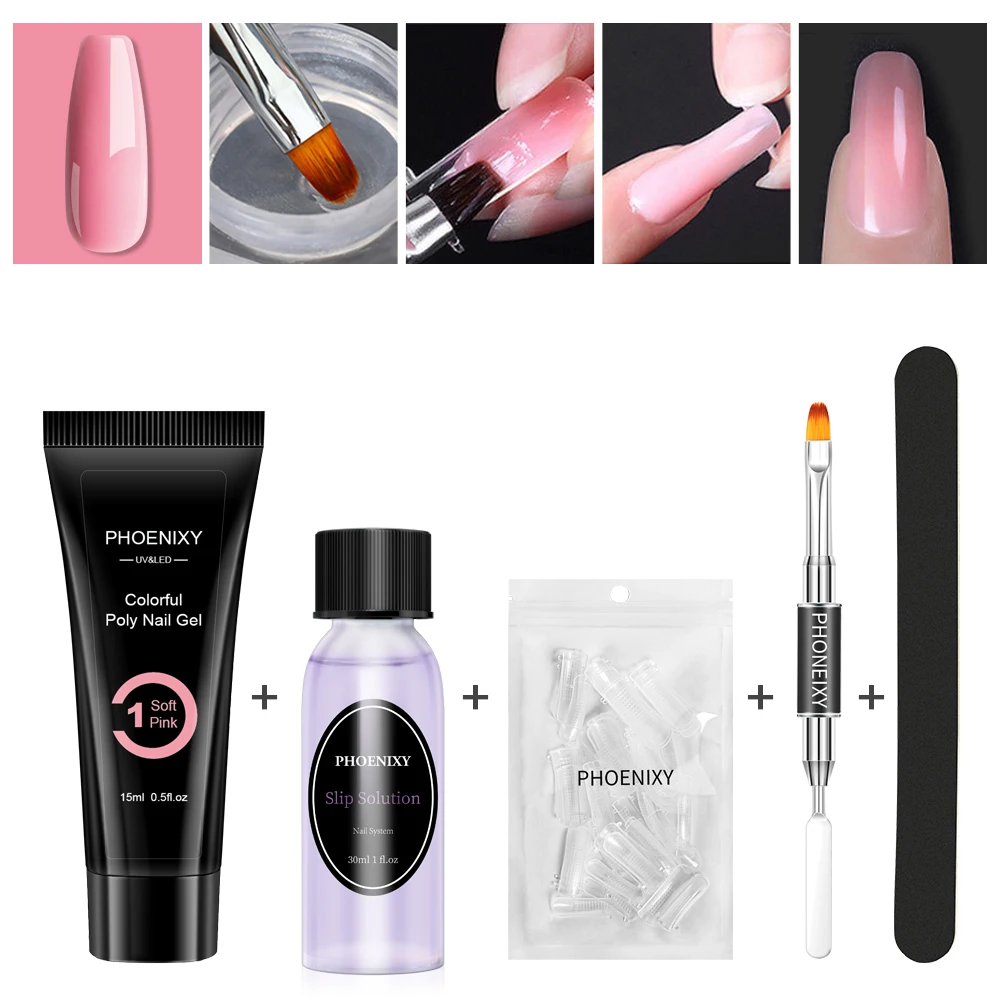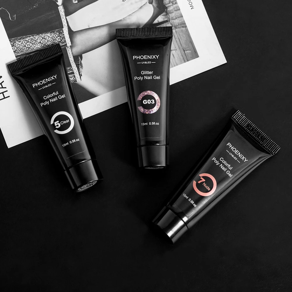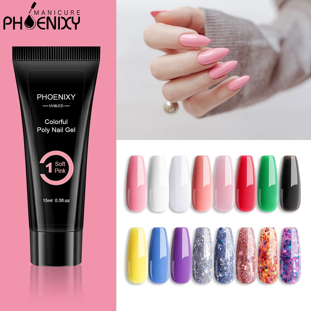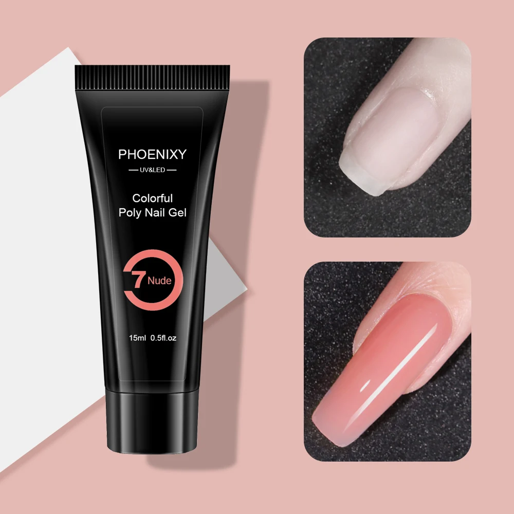 Полигель PHOENIXY 15 мл для быстрого наращивания ногтей, акриловый цветной Желейный гель для наращивания ногтей, камуфляжный УФ-лак для быстрого наращивания ногтей
