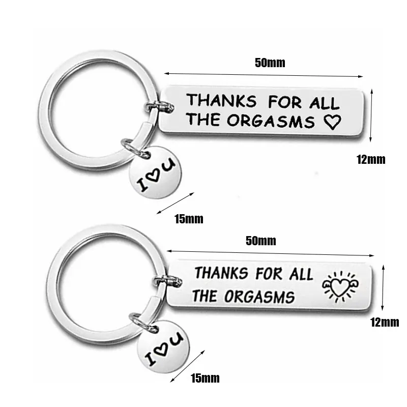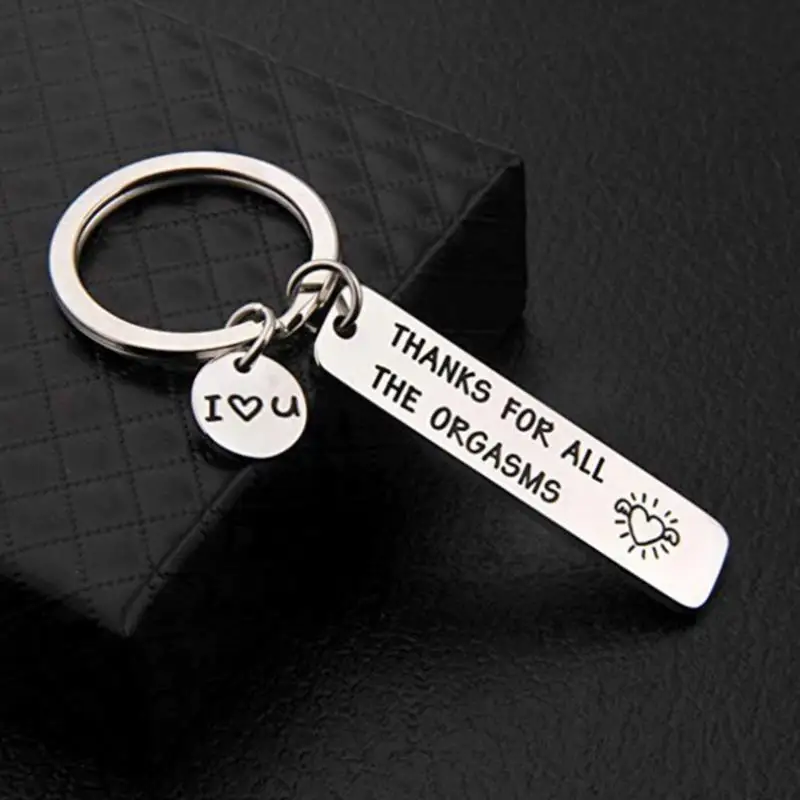Забавный брелок для ключей для мужчин и женщин, кольцо для ключей с подвеской для пар, спасибо за все оргазм, подарок для любимой подруги, брелок для ключей