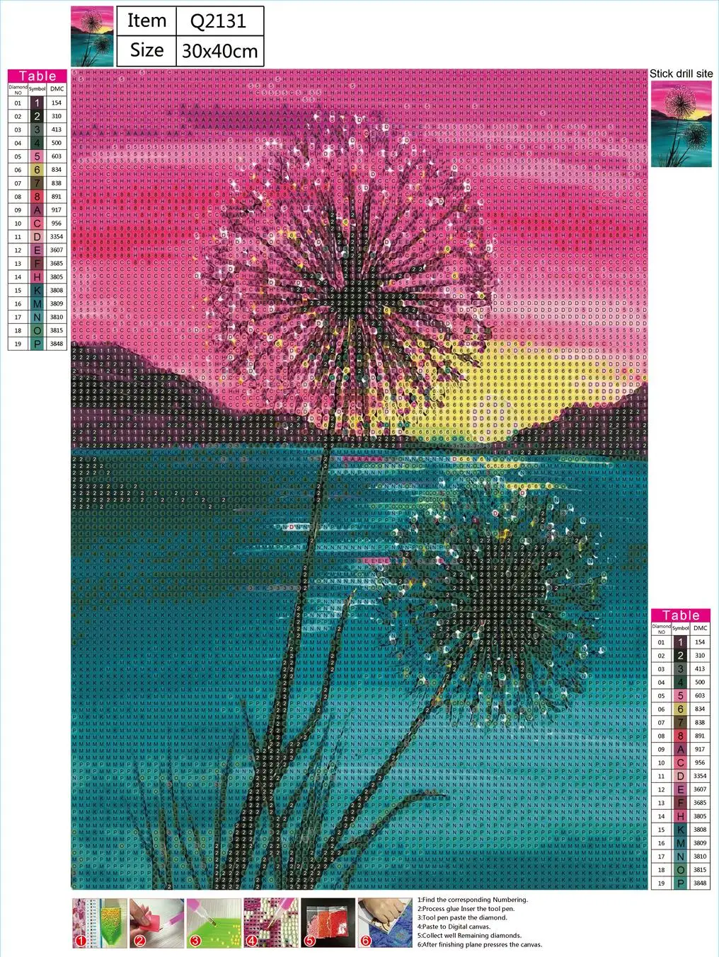 Алмазная картина 5D с изображением пейзажа, растений, цветов, вышив...