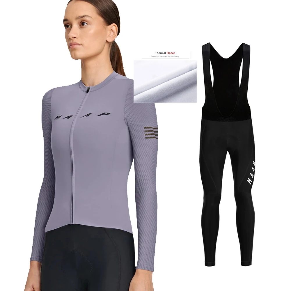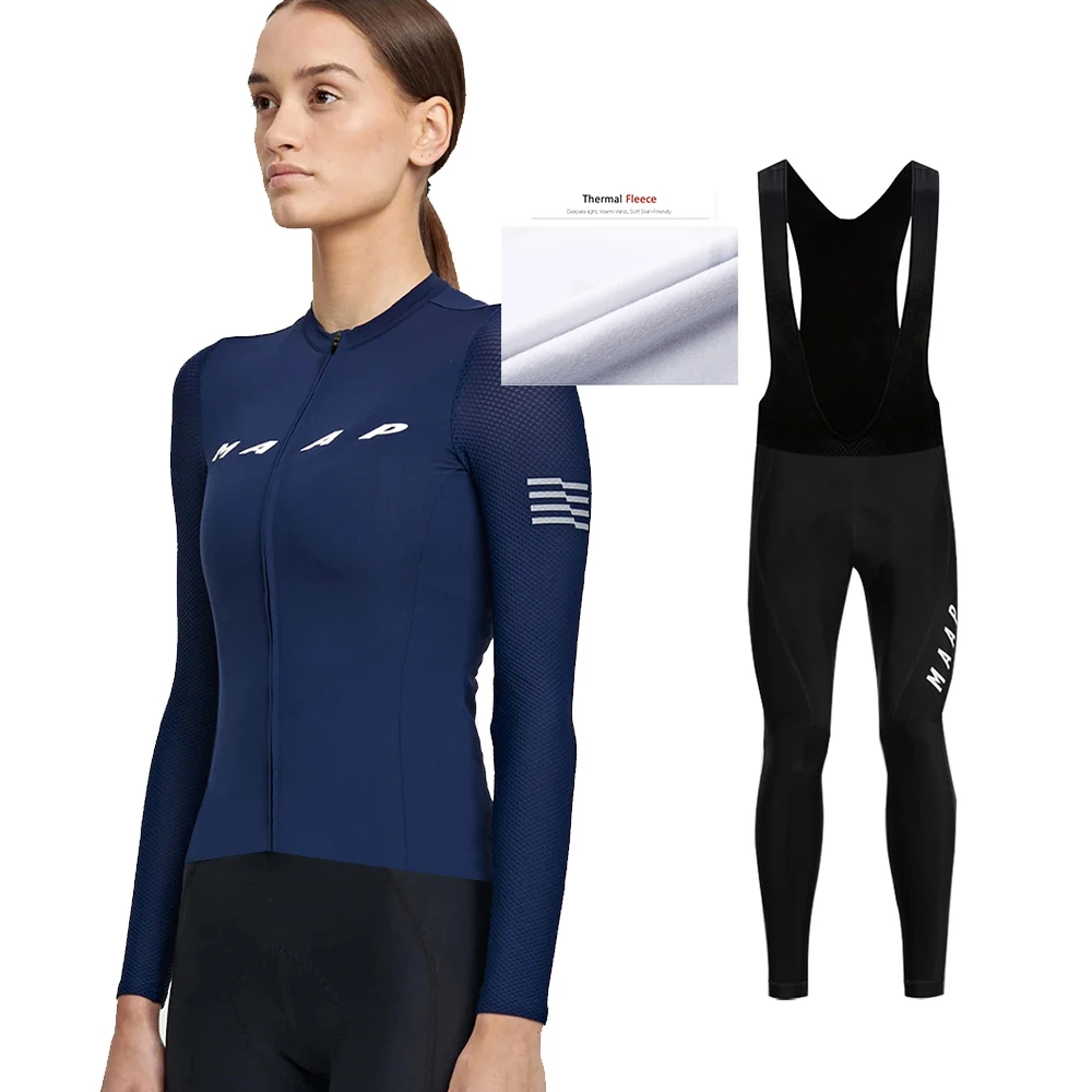 Новая зимняя Женская Теплая Флисовая спортивная одежда MAAP для велоспорта с нагрудником и брюками для горного велосипеда MTB велосипедная одежда для велоспорта