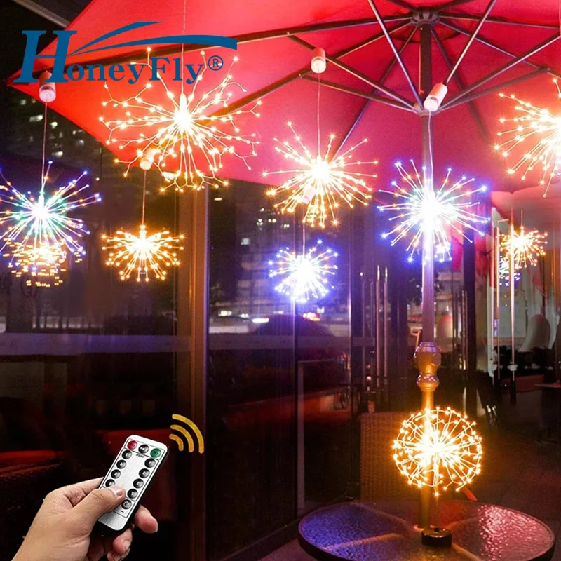 HoneyFly светодиодный светильник для фейерверков IP65 Фея медная проволока Starburst струнная лампа с дистанционным управлением 8 режимов на батарейках Рождество