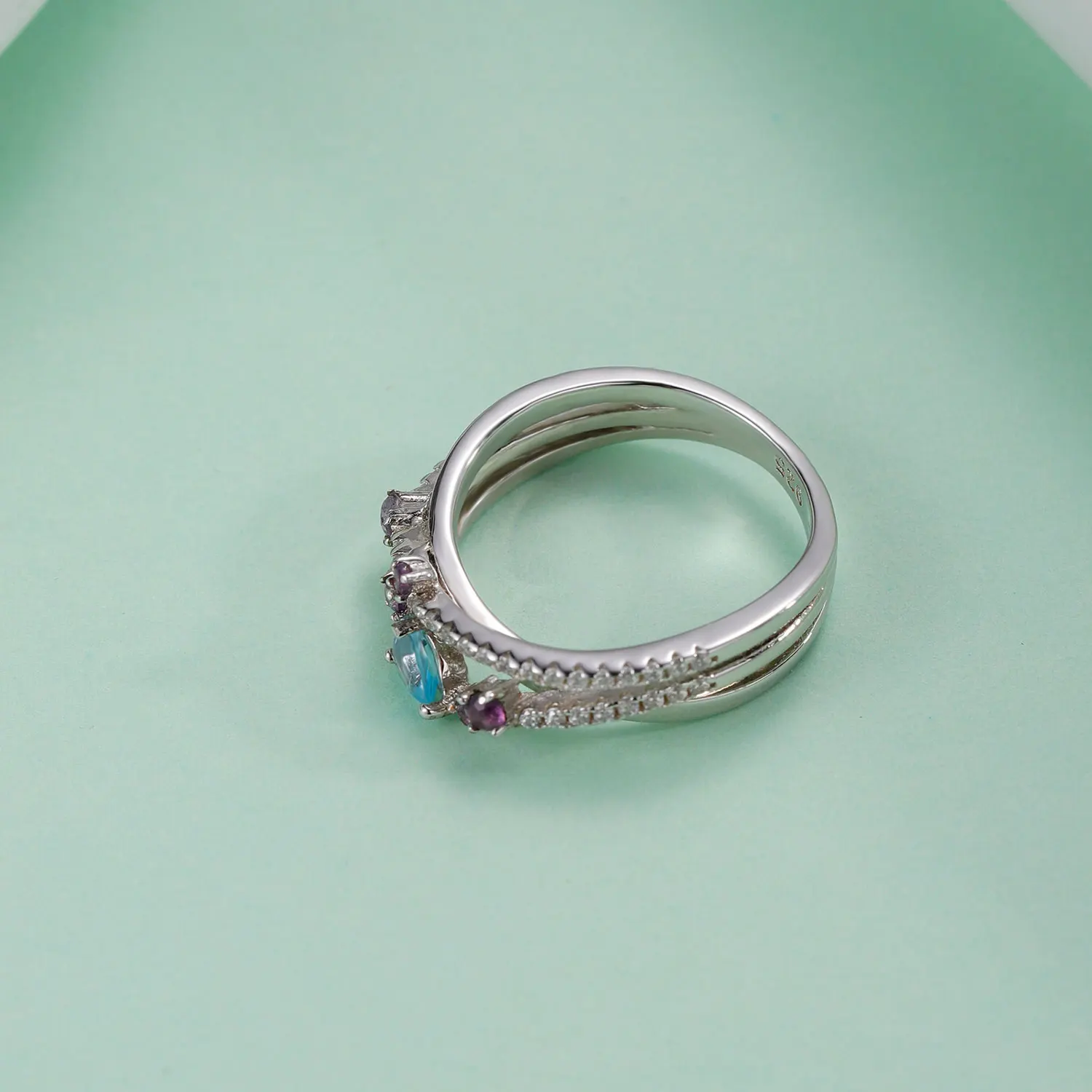 Женское кольцо из серебра 925 пробы, с натуральным диффузионным сап...