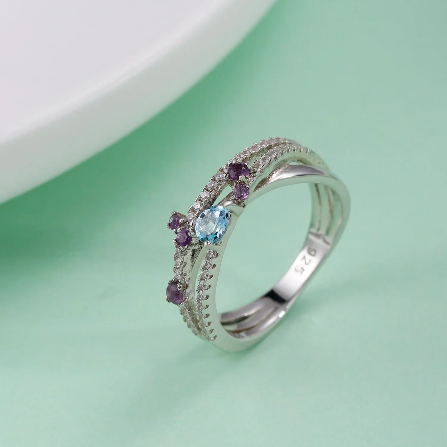 Женское кольцо из серебра 925 пробы с натуральным аметистом